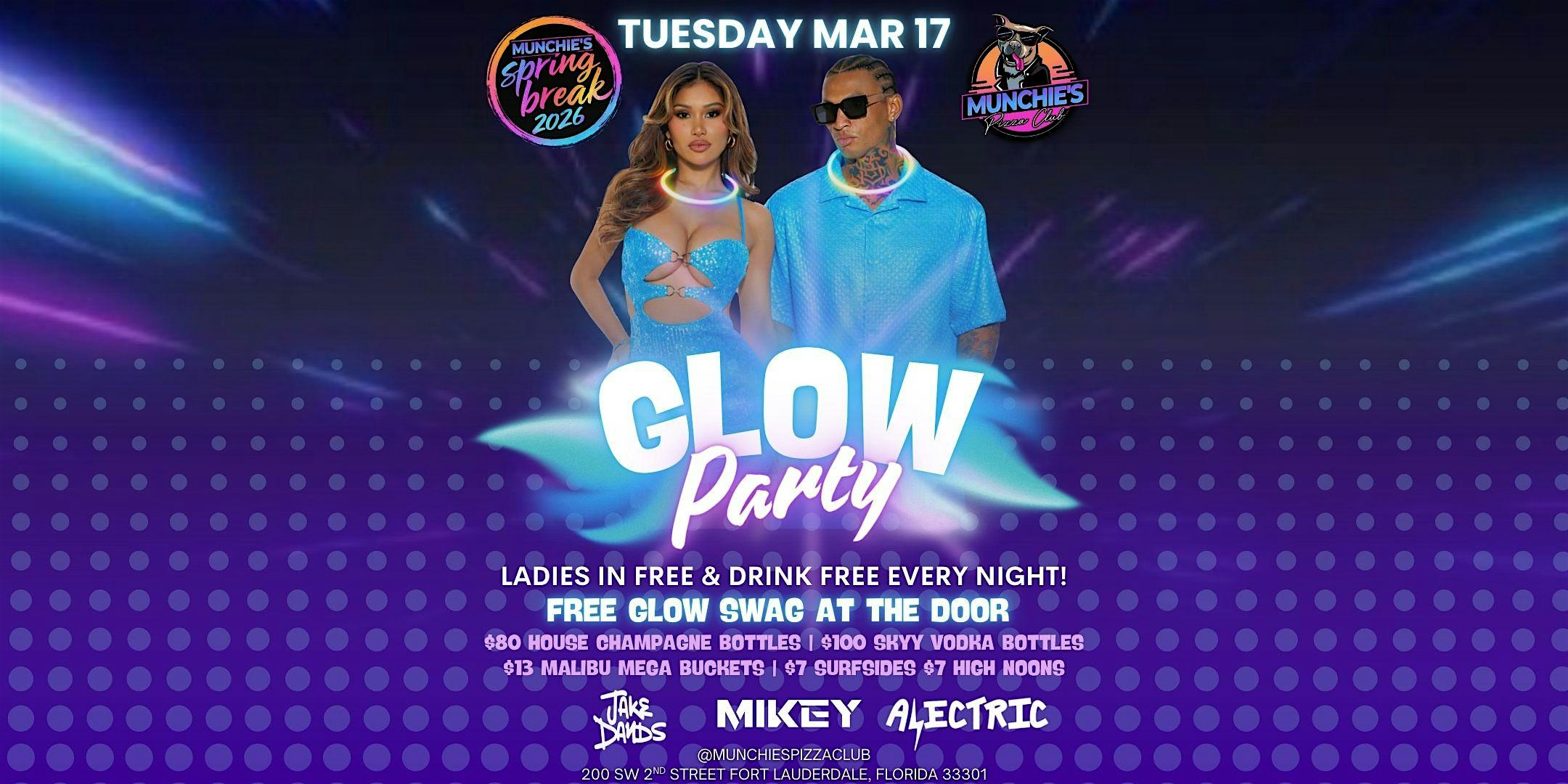 by admin13Feb 3/17- GLOW PARTY – SPRING BREAK 2026 @ MUNCHIE’S at Munchie’s Pizza Club – Fort Lauderdale, FL 3/17- GLOW PARTY – SPRING BREAK 2026 @ MUNCHIE’S at Munchie’s Pizza Club – Fort Lauderdale, FL 2 2 people viewed this event. The ultimate Spring Break destination in downtown Fort Lauderdale! Tickets-RSVP Link Date And Time Wednesday, March 18th, 2026 01:00 AM (PST) Venue Munchie's Pizza Club Location 200 Southwest 2nd Street, Fort Lauderdale, FL 33301 Event Types MusicParty or Social Gathering Event Category FloridaFt Lauderdale Share With Friends Facebook Twitter Linkedin Xing Pinterest Share This Post: