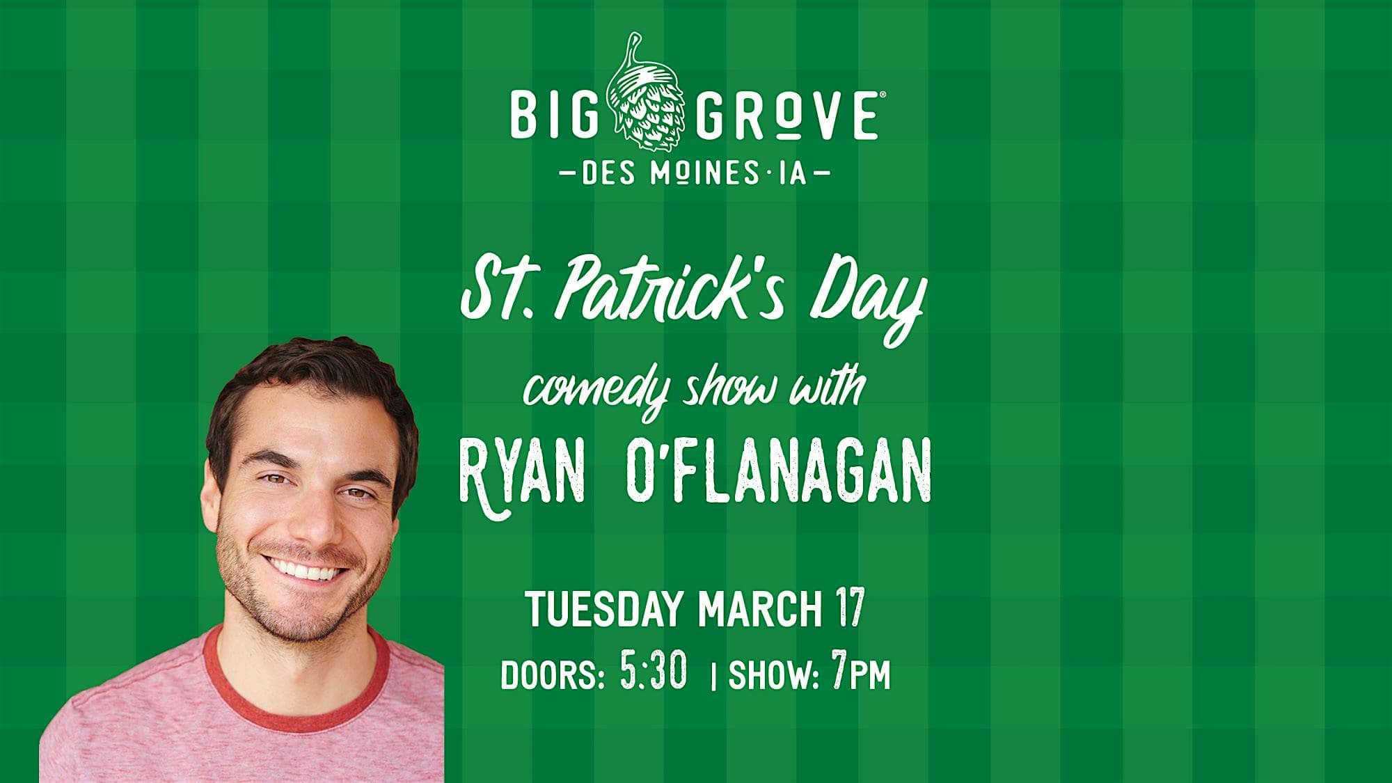 by admin14Feb Comedy Show with Ryan O’Flanagan at Big Grove Brewery & Taproom – Des Moines, IA Comedy Show with Ryan O’Flanagan at Big Grove Brewery & Taproom – Des Moines, IA 3 3 people viewed this event. We’re hosting a St. Patrick’s Day comedy show with Ryan O’Flanagan! Tickets-RSVP Link Date And Time Wednesday, March 18th, 2026 12:00 AM (PST) Venue Big Grove Brewery & Taproom Location 555 17th Street, Des Moines, IA 50309 Event Types Concert or PerformancePerforming & Visual Arts Event Category Des MoinesIowa Share With Friends Facebook Twitter Linkedin Xing Pinterest Share This Post:
