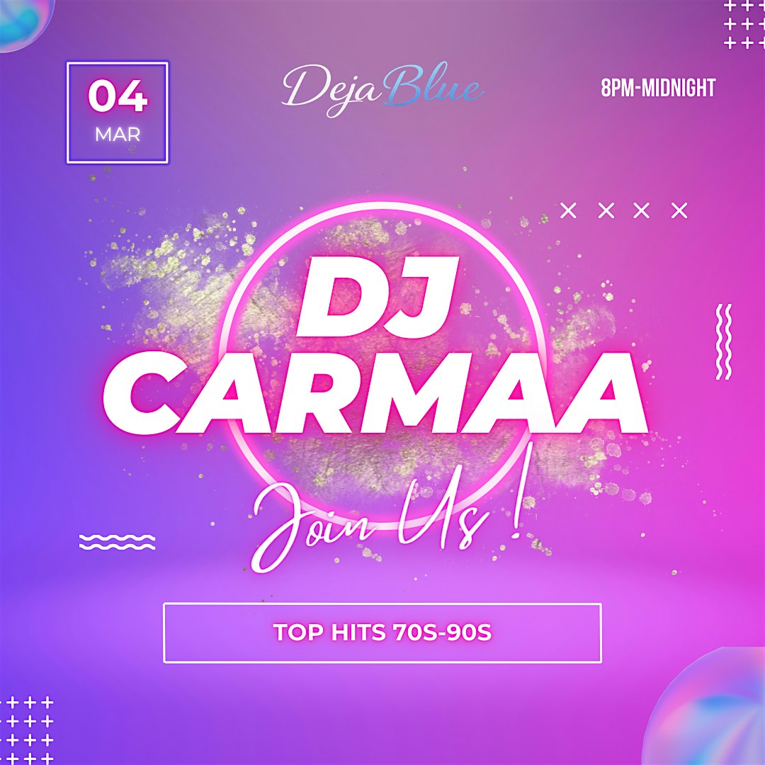 by admin05Mar DJ CARMAA: 70s-90s at Deja Blue – Seaside, CA DJ CARMAA: 70s-90s at Deja Blue – Seaside, CA 1 1 people viewed this event. Good music. Great energy. Timeless hits. Tickets-RSVP Link Date And Time Wednesday, March 18th, 2026 08:00 PM (PST) Venue Deja Blue Location 500 Broadway Avenue, Seaside, CA 93955 Event Types Concert or PerformanceMusic Event Category California Share With Friends Facebook Twitter Linkedin Xing Pinterest Share This Post: