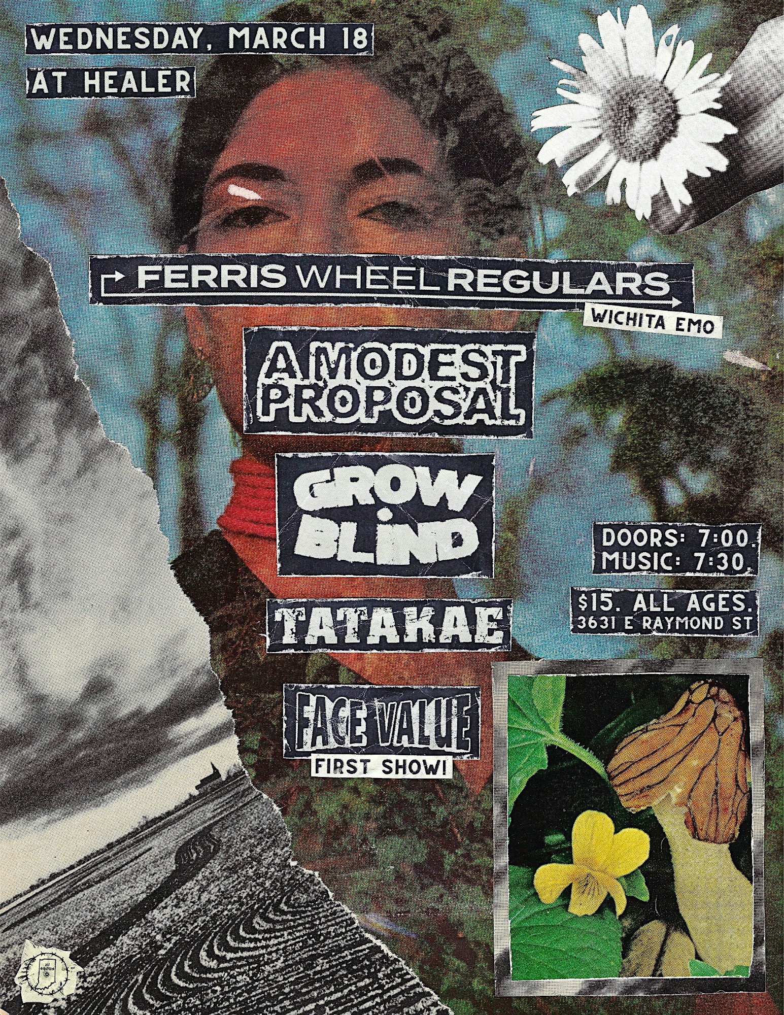 by admin27Feb Ferris Wheel Regulars / A Modest Proposal / Grow Blind + More @ Healer at Healer – Indianapolis, IN Ferris Wheel Regulars / A Modest Proposal / Grow Blind + More @ Healer at Healer – Indianapolis, IN 1 1 people viewed this event. WEEKNIGHT UNITY. THE 317 AND THE 812 UNITE AGAIN! THIS TIME TO SUPPORT WICHITA HUGE RIFF ROCKERS, FERRIS WHEEL REGULARS. Tickets-RSVP Link Date And Time Wednesday, March 18th, 2026 07:00 PM (PST) Venue Healer Location 3631 East Raymond Street, Indianapolis, IN 46203 Event Types Concert or PerformanceMusic Event Category IndianaIndianapolis Share With Friends Facebook Twitter Linkedin Xing Pinterest Share This Post: