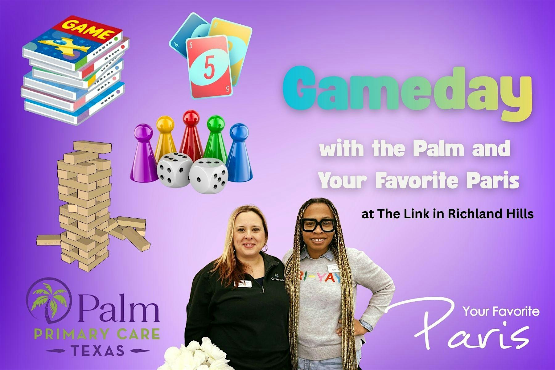 by admin27Feb Gameday with The Palm and Your Favorite Paris at The Link Event & Recreation Center – Richland Hills, TX Gameday with The Palm and Your Favorite Paris at The Link Event & Recreation Center – Richland Hills, TX 1 1 people viewed this event. We’re playing a variety of games, board games, card games, group games, and more. Come ready to connect and enjoy great company. Tickets-RSVP Link Date And Time Wednesday, March 18th, 2026 11:00 AM (PST) Venue The Link Event & Recreation Center Location 6750 Baker Boulevard, Richland Hills, TX 76118 Event Types Food & Drink Event Category Texas Share With Friends Facebook Twitter Linkedin Xing Pinterest Share This Post:
