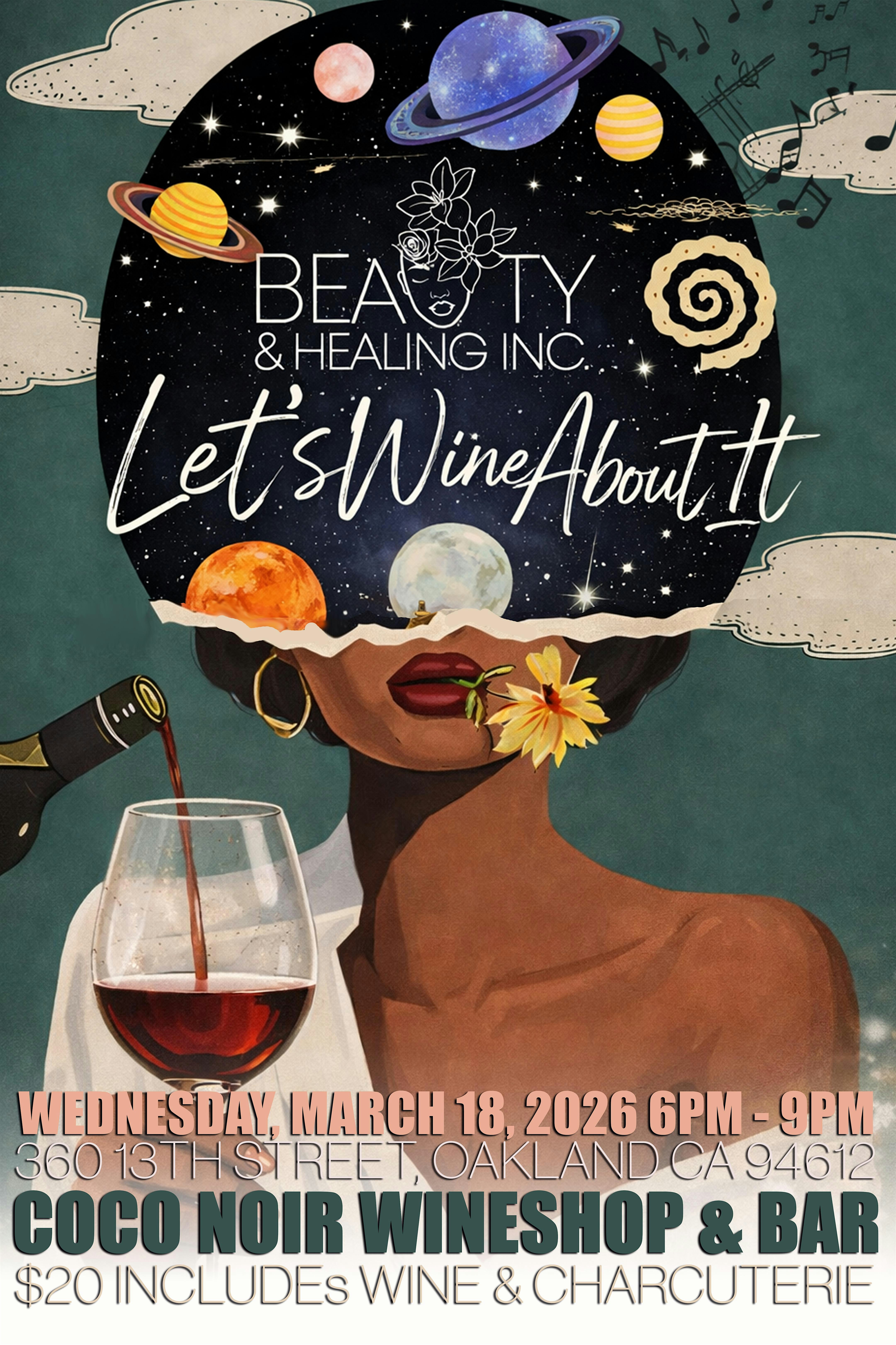 by admin05Mar Let’s Wine About It! – March Edition at CoCo Noir Wine Shop & Bar – Oakland, CA Let’s Wine About It! – March Edition at CoCo Noir Wine Shop & Bar – Oakland, CA 2 2 people viewed this event. A healing-centered, wine-infused gathering for women to unpack life’s weight, sip something smooth, and build joy & truth in sisterhood. Tickets-RSVP Link Date And Time Wednesday, March 18th, 2026 06:00 PM (PST) Venue CoCo Noir Wine Shop & Bar Location 360 13th Street, Oakland, CA 94612 Event Types Food & DrinkParty or Social Gathering Event Category CaliforniaOakland Share With Friends Facebook Twitter Linkedin Xing Pinterest Share This Post: