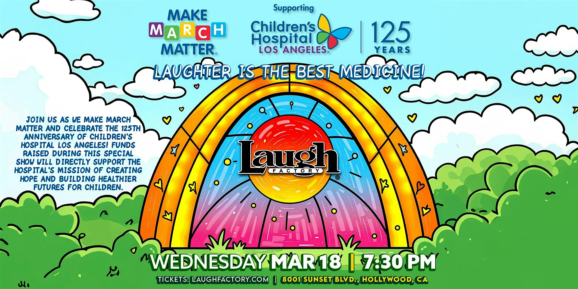 by admin05Mar Make March Matter at Laugh Factory – Hollywood – Los Angeles, CA Make March Matter at Laugh Factory – Hollywood – Los Angeles, CA 2 2 people viewed this event. Make March Matter is a month-long fundraising campaign that takes place right in your neighborhood. Tickets-RSVP Link Date And Time Wednesday, March 18th, 2026 07:00 PM (PST) Venue Laugh Factory - Hollywood Location 8001 Sunset Blvd, Los Angeles, CA 90046 Event Types Concert or PerformanceFilm, Media & Entertainment Event Category CaliforniaLos Angeles Share With Friends Facebook Twitter Linkedin Xing Pinterest Share This Post: