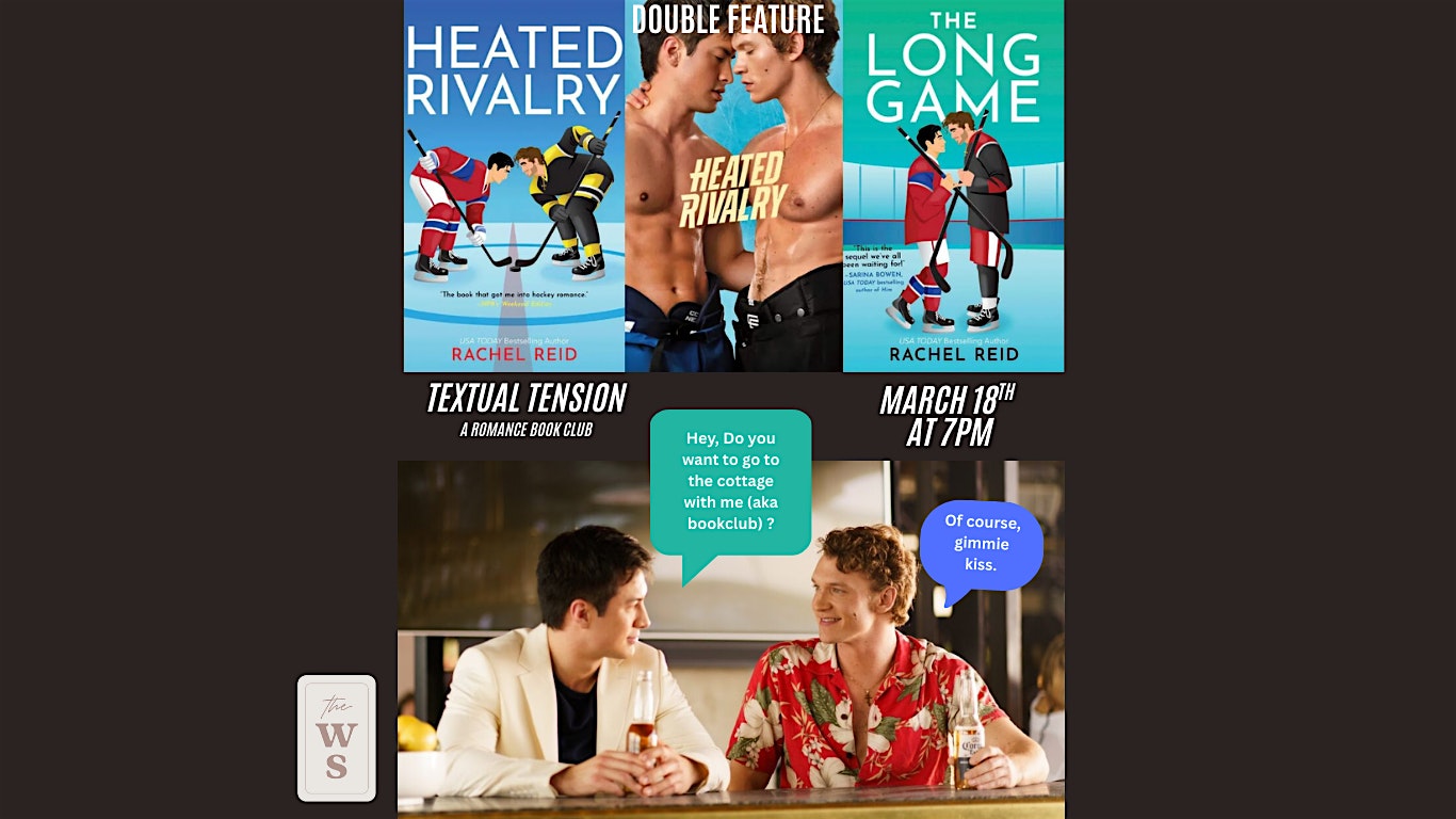 by admin13Feb March Textual Tension Discusses HEATED RIVALRY!! at The Whispering Shelf – Indianapolis, IN March Textual Tension Discusses HEATED RIVALRY!! at The Whispering Shelf – Indianapolis, IN 3 3 people viewed this event. Join us for a romance book club discussion of Heated Rivalry! Tickets-RSVP Link Date And Time Wednesday, March 18th, 2026 11:00 PM (PST) Venue The Whispering Shelf Location 414 North College Avenue, Indianapolis, IN 46202 Event Types Party or Social Gathering Event Category IndianaIndianapolis Share With Friends Facebook Twitter Linkedin Xing Pinterest Share This Post: