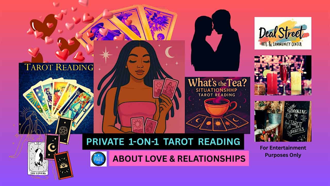 Private 1-on-1 Tarot Reading About LOVE & RELATIONSHIPS at Deal Street Arts & Community Center – Philadelphia, PA Private 1-on-1 Tarot Reading About LOVE & RELATIONSHIPS at Deal Street Arts & Community Center – Philadelphia, PA 2 2 people viewed this event. Get ready to dive deep into your love life with a personal tarot session that’s all about your heart’s next move. Tickets-RSVP Link Register for event Date And Time Wednesday, March 18th, 2026 @ 01:00 PM Location 1537 Deal Street, Philadelphia, PA 19124 Event Types Party or Social Gathering Event Category PennsylvaniaPhiladelphia Share With Friends Facebook Twitter Linkedin Xing Pinterest