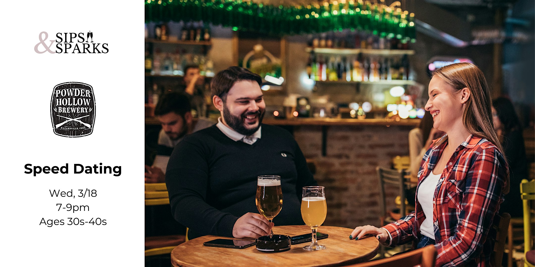 by admin13Feb Speed Dating Ages 30s-40s in Enfield, CT at Powder Hollow Brewery at Powder Hollow Brewery – Enfield, CT Speed Dating Ages 30s-40s in Enfield, CT at Powder Hollow Brewery at Powder Hollow Brewery – Enfield, CT 2 2 people viewed this event. Ready to meet local singles face-to-face? Join us for a fun, low-pressure evening of meaningful connections! Tickets-RSVP Link Date And Time Wednesday, March 18th, 2026 11:00 PM (PST) Venue Powder Hollow Brewery Location 504 Hazard Avenue, Enfield, CT 6082 Event Types Community & CultureParty or Social Gathering Event Category Connecticut Share With Friends Facebook Twitter Linkedin Xing Pinterest Share This Post: