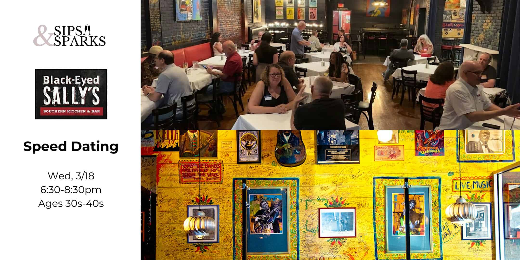 by admin23Feb Speed Dating Ages 30s-40s in Hartford, CT at Black-Eyed Sally’s at Black-Eyed Sally’s Southern Kitchen & Bar – Hartford, CT Speed Dating Ages 30s-40s in Hartford, CT at Black-Eyed Sally’s at Black-Eyed Sally’s Southern Kitchen & Bar – Hartford, CT 1 1 people viewed this event. Ready to meet local singles face-to-face? Join us for a fun, low-pressure evening of meaningful connections! Tickets-RSVP Link Date And Time Wednesday, March 18th, 2026 06:00 PM (PST) Venue Black-Eyed Sally's Southern Kitchen & Bar Location 350 Asylum Street, Hartford, CT 6103 Event Types Community & CultureParty or Social Gathering Event Category ConnecticutHartford Share With Friends Facebook Twitter Linkedin Xing Pinterest Share This Post: