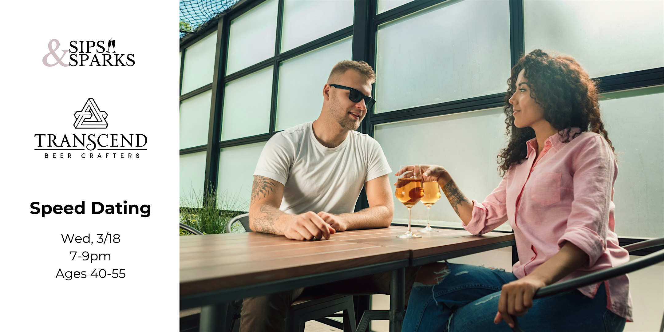 by admin13Feb Speed Dating Ages 40-55 in Plainville, CT at Transcend Beer Crafters at Transcend Beer Crafters – Plainville, CT Speed Dating Ages 40-55 in Plainville, CT at Transcend Beer Crafters at Transcend Beer Crafters – Plainville, CT 2 2 people viewed this event. Ready to meet local singles face-to-face? Join us for a fun, low-pressure evening of meaningful connections! Tickets-RSVP Link Date And Time Wednesday, March 18th, 2026 11:00 PM (PST) Venue Transcend Beer Crafters Location 45 Northwest Drive, Plainville, CT 6062 Event Types Community & CultureParty or Social Gathering Event Category Connecticut Share With Friends Facebook Twitter Linkedin Xing Pinterest Share This Post: