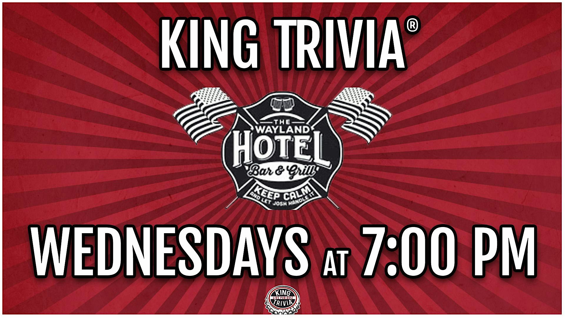 Trivia Night at Wayland Hotel Bar & Grill at Wayland Hotel & Bar – Wayland, MI Trivia Night at Wayland Hotel Bar & Grill at Wayland Hotel & Bar – Wayland, MI 2 2 people viewed this event. Your Weekly Bar Trivia Challenge! Drink a beer, munch some food, and compete for glory & prizes! FREE to play! Tickets-RSVP Link Register for event Date And Time Wednesday, March 18th, 2026 @ 07:00 PM Location 104 South Main Street, Wayland, MI 49348 Event Types Food & DrinkGame or Competition Event Category Michigan Share With Friends Facebook Twitter Linkedin Xing Pinterest
