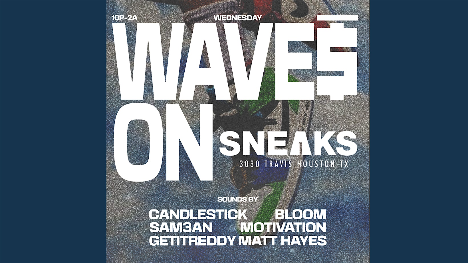by admin24Feb WAVES ON BRAND at Sneaks Coffee Lounge – Houston, TX WAVES ON BRAND at Sneaks Coffee Lounge – Houston, TX 2 2 people viewed this event. Underground House Party Every Wednesday Night Tickets-RSVP Link Date And Time Wednesday, March 18th, 2026 10:00 PM (PST) Venue Sneaks Coffee Lounge Location 3030 Travis Street, Houston, TX 77006 Event Types MusicParty or Social Gathering Event Category HoustonTexas Share With Friends Facebook Twitter Linkedin Xing Pinterest Share This Post: