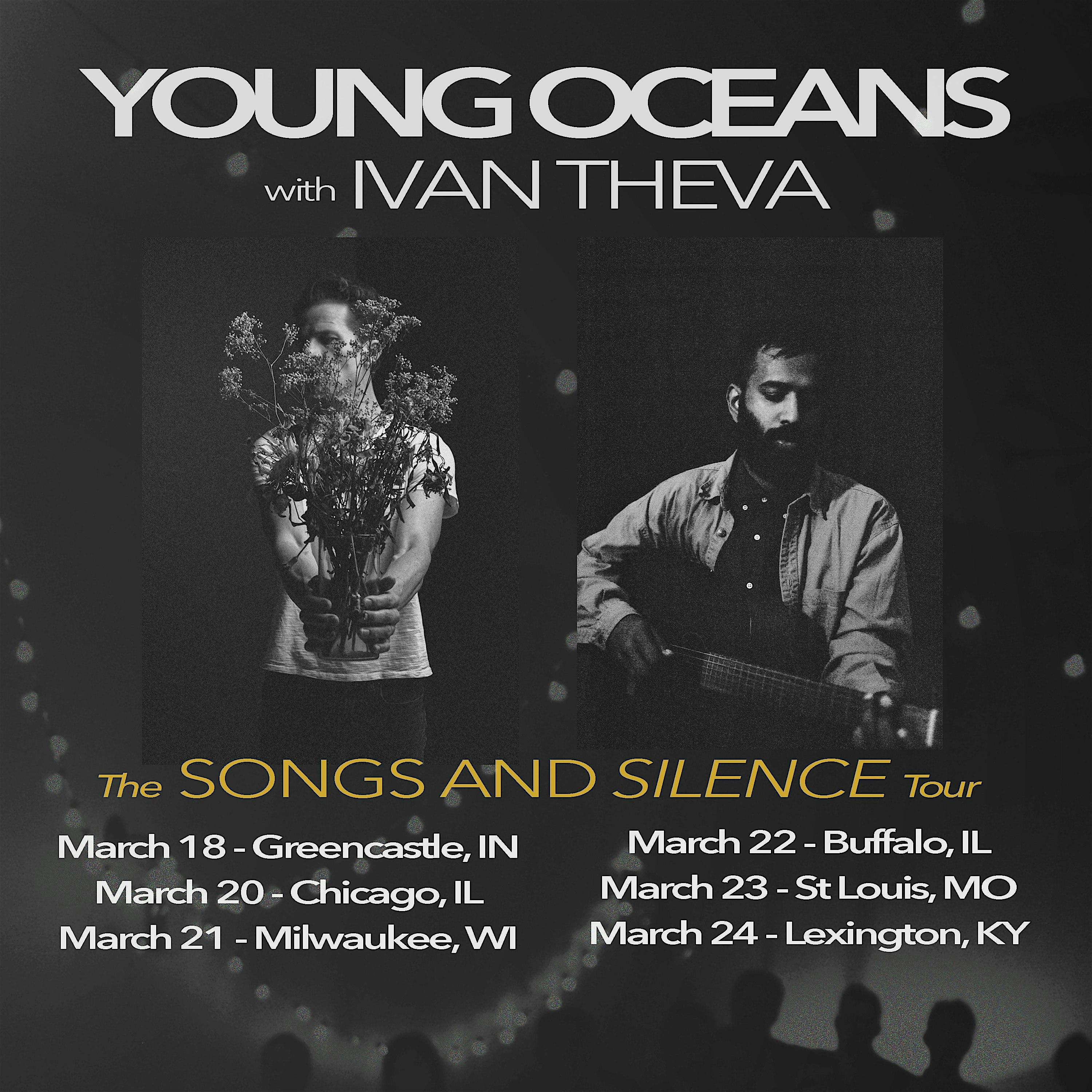 by admin13Feb Young Oceans w/ Ivan Theva (Greencastle, IN) – Songs and Silence Tour at 10 W Washington St – Greencastle, IN Young Oceans w/ Ivan Theva (Greencastle, IN) – Songs and Silence Tour at 10 W Washington St – Greencastle, IN 1 1 people viewed this event. Join us at Greencastle (the Well) for an evening of songs with Young Oceans and Ivan Theva on their Songs and Silence Tour. Tickets-RSVP Link Date And Time Wednesday, March 18th, 2026 11:00 PM (PST) Venue 10 W Washington St Location 10 West Washington Street, Greencastle, IN 46135 Event Types Concert or PerformanceMusic Event Category Indiana Share With Friends Facebook Twitter Linkedin Xing Pinterest Share This Post:
