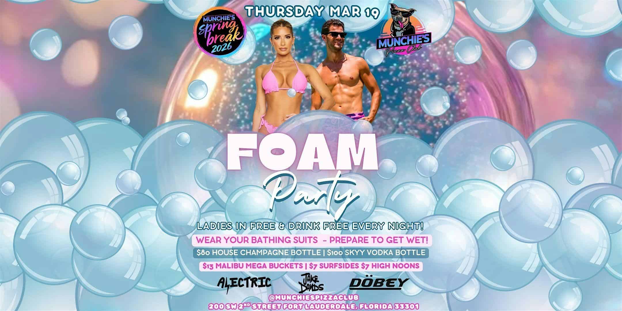 by admin23Feb 3/19- FOAM PARTY – SPRING BREAK 2026 @ MUNCHIE’S at Munchie’s Pizza Club – Fort Lauderdale, FL 3/19- FOAM PARTY – SPRING BREAK 2026 @ MUNCHIE’S at Munchie’s Pizza Club – Fort Lauderdale, FL 1 1 people viewed this event. The ultimate Spring Break destination in downtown Fort Lauderdale! Tickets-RSVP Link Date And Time Thursday, March 19th, 2026 09:00 PM (PST) Venue Munchie's Pizza Club Location 200 Southwest 2nd Street, Fort Lauderdale, FL 33301 Event Types MusicParty or Social Gathering Event Category FloridaFt Lauderdale Share With Friends Facebook Twitter Linkedin Xing Pinterest Share This Post: