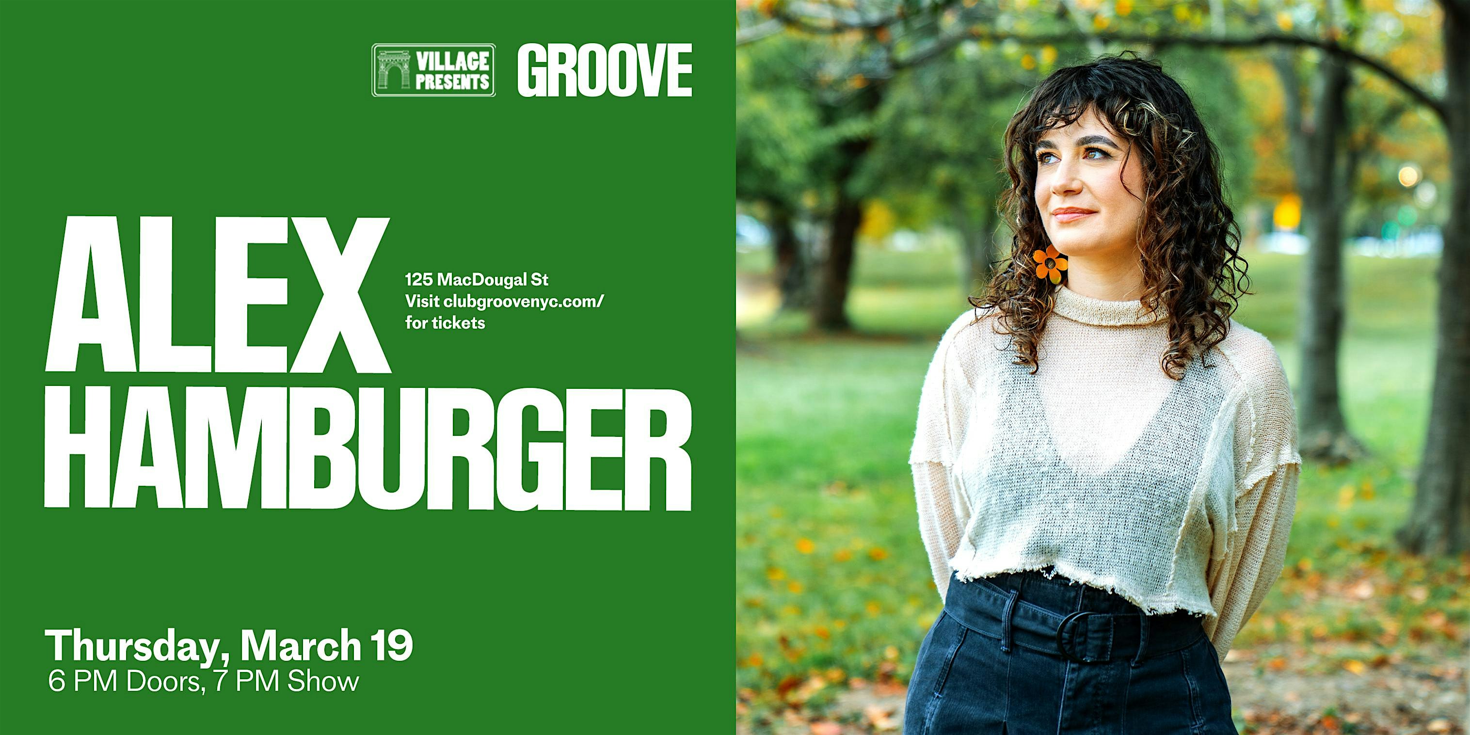 by admin13Feb Alex Hamburger at Groove – New York, NY Alex Hamburger at Groove – New York, NY 1 1 people viewed this event. Alex Hamburger Live at Groove | Thursday, March 19th | 7PM Show, 6PM Doors Tickets-RSVP Link Date And Time Thursday, March 19th, 2026 11:00 PM (PST) Venue Groove Location 125 MacDougal Street, New York, NY 10012 Event Types Concert or PerformanceMusic Event Category New YorkNew York City Share With Friends Facebook Twitter Linkedin Xing Pinterest Share This Post: