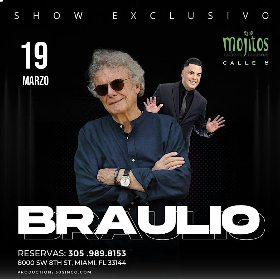 by admin13Feb BRAULIO ” GRAN SHOW ” MOJITOS CALLE 8 at Mojitos Calle 8 – Miami, FL BRAULIO ” GRAN SHOW ” MOJITOS CALLE 8 at Mojitos Calle 8 – Miami, FL 1 1 people viewed this event. BRAULIO ” GRAN SHOW ” MOJITOS CALLE 8 Tickets-RSVP Link Date And Time Thursday, March 19th, 2026 11:00 PM (PST) Venue Mojitos Calle 8 Location 8000 Southwest 8th Street, Miami, FL 33144 Event Types Concert or PerformanceMusic Event Category FloridaMiami Share With Friends Facebook Twitter Linkedin Xing Pinterest Share This Post: