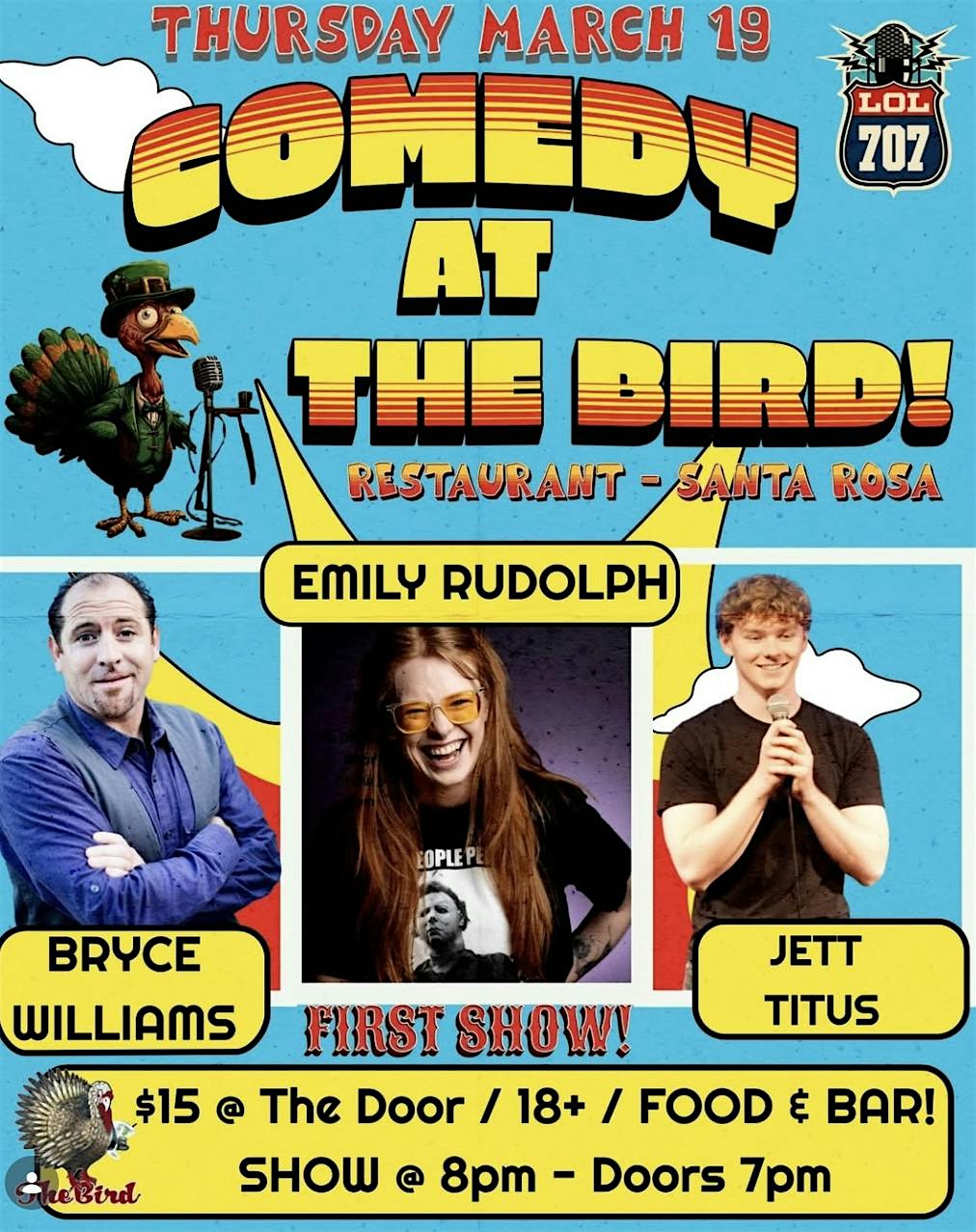 by admin05Mar LOL 707 Stand-Up Comedy is BACK in Santa Rosa! at The Bird Restaurant – Santa Rosa, CA LOL 707 Stand-Up Comedy is BACK in Santa Rosa! at The Bird Restaurant – Santa Rosa, CA 1 1 people viewed this event. Join us at THE BIRD Restaurant in Santa Rosa for our first LOL 707 Comedy show of 2026 at a brand-new location — and what a spot it is! Tickets-RSVP Link Date And Time Thursday, March 19th, 2026 08:00 PM (PST) Venue The Bird Restaurant Location 4776 Sonoma Highway, Santa Rosa, CA 95409 Event Types Concert or PerformanceFilm, Media & Entertainment Event Category California Share With Friends Facebook Twitter Linkedin Xing Pinterest Share This Post: