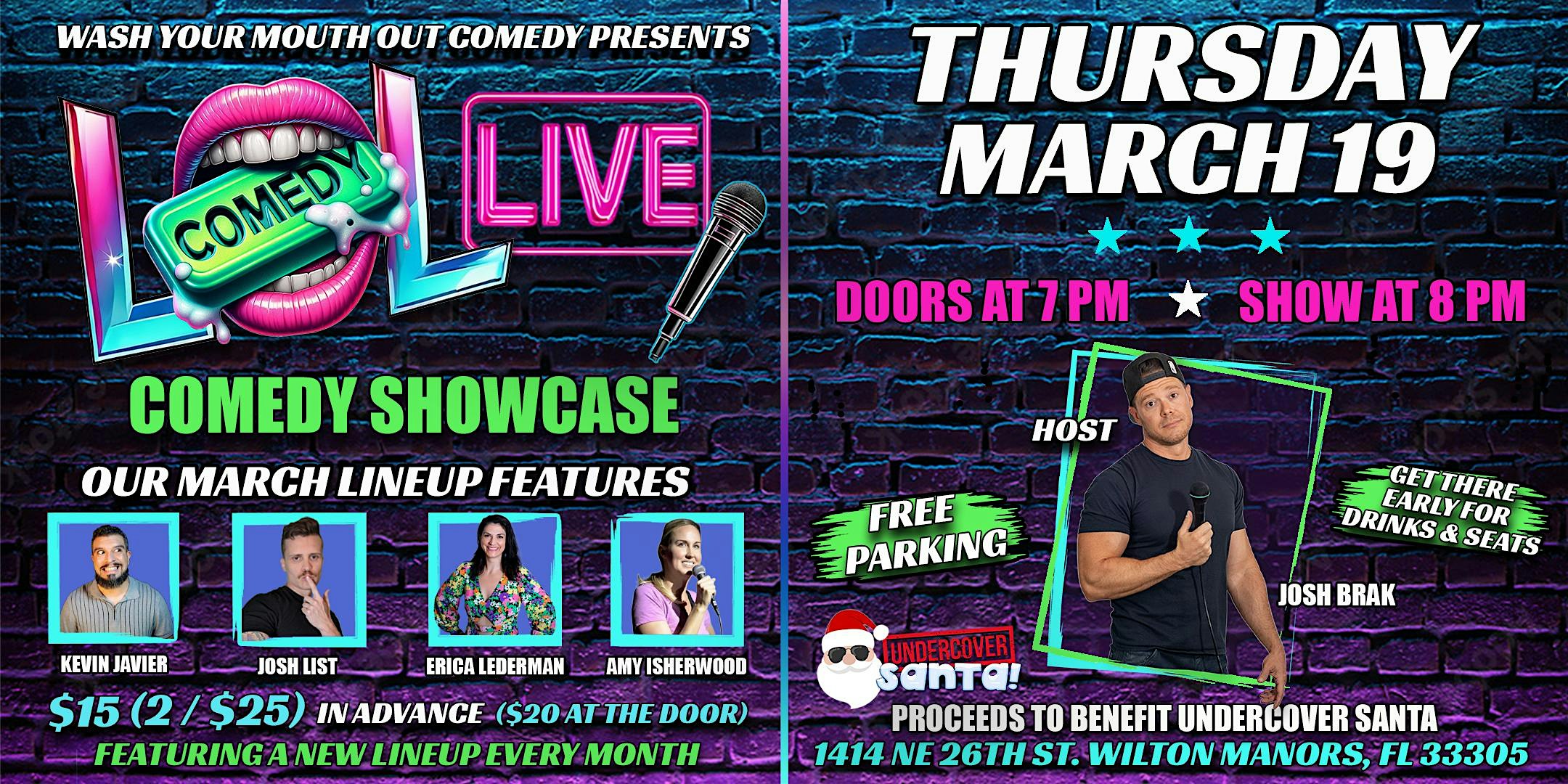 by admin05Mar LOL LIVE: Comedy For Charity Show – March 19, 2026 at Wilton Collective – Wilton Manors, FL LOL LIVE: Comedy For Charity Show – March 19, 2026 at Wilton Collective – Wilton Manors, FL 2 2 people viewed this event. Get ready to laugh your heart out while supporting a great cause at this hilarious comedy night! Tickets-RSVP Link Date And Time Thursday, March 19th, 2026 07:00 PM (PST) Venue Wilton Collective Location 1414 Northeast 26th Street, Wilton Manors, FL 33305 Event Types Concert or PerformanceFilm, Media & Entertainment Event Category Florida Share With Friends Facebook Twitter Linkedin Xing Pinterest Share This Post: