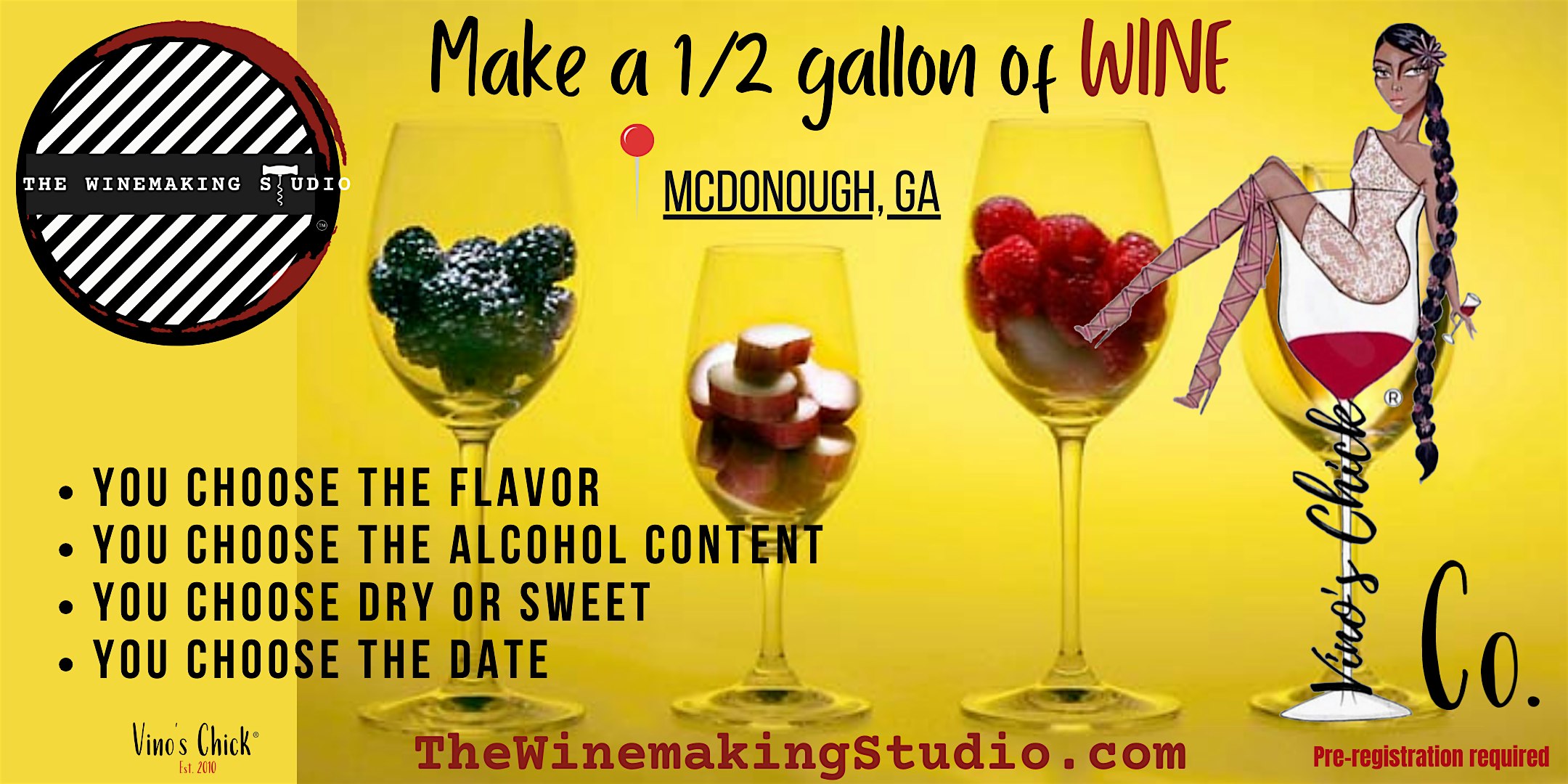 Make 1/2 Gallon of Wine (McDONOUGH) at The Winemaking Studio – McDonough, GA Make 1/2 Gallon of Wine (McDONOUGH) at The Winemaking Studio – McDonough, GA 1 1 people viewed this event. Let’s get together to learn how to make 1/2 gallon of wine in McDonough Tickets-RSVP Link Register for event Date And Time Thursday, March 19th, 2026 @ 01:00 PM Location 240 Hampton Street, McDonough, GA 30253 Event Types Class, Training, or WorkshopFood & Drink Event Category AtlantaGeorgia Share With Friends Facebook Twitter Linkedin Xing Pinterest