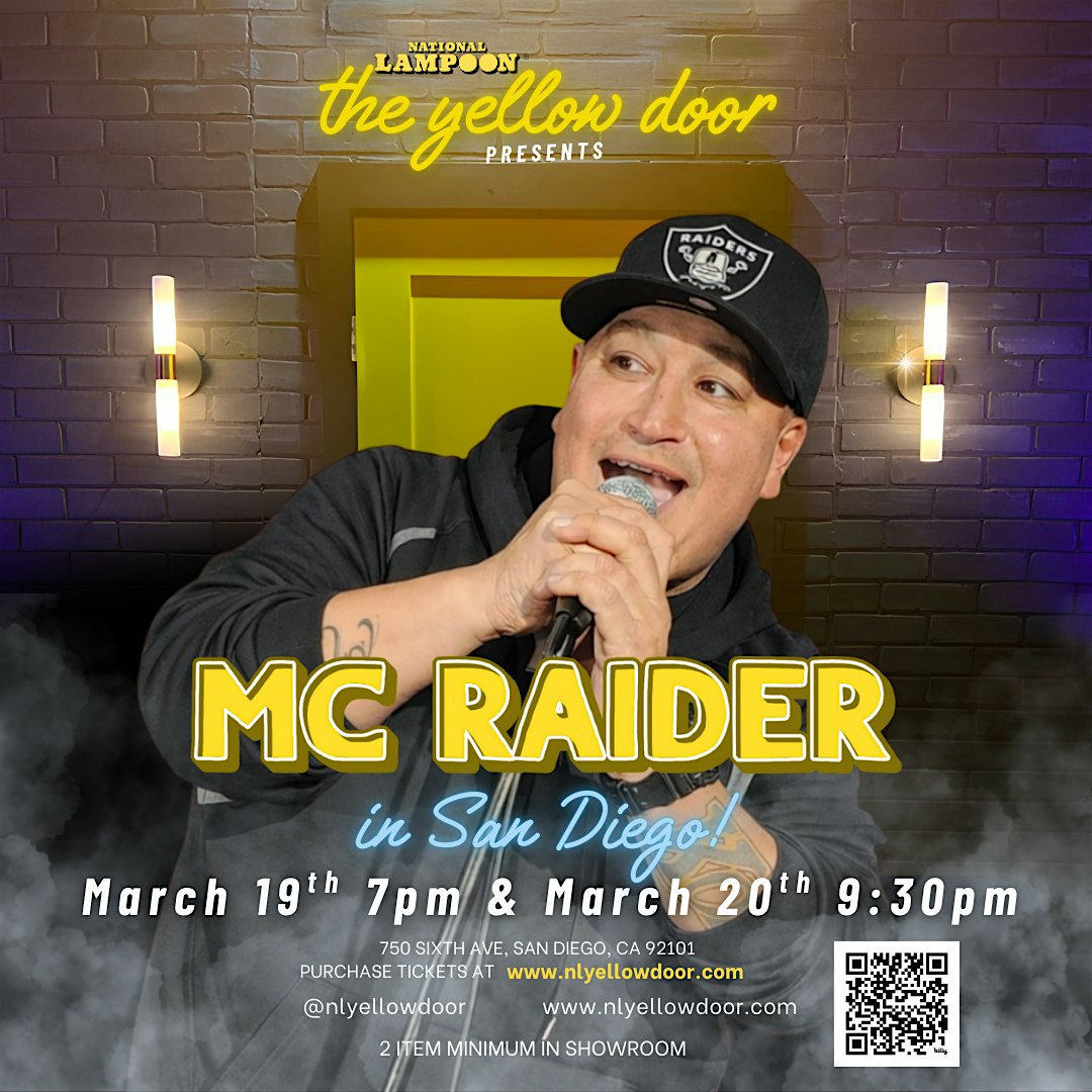 by admin05Mar MC Raider Live in San Diego! at National Lampoon The Yellow Door – San Diego, CA MC Raider Live in San Diego! at National Lampoon The Yellow Door – San Diego, CA 1 1 people viewed this event. Get ready for a night of big laughs, real stories, and undeniable energy as MC Raider takes over National Lampoon: The Yellow Door. Tickets-RSVP Link Date And Time Thursday, March 19th, 2026 07:00 PM (PST) Venue National Lampoon The Yellow Door Location 750 Sixth Avenue, San Diego, CA 92101 Event Types Concert or PerformancePerforming & Visual Arts Event Category CaliforniaSan Diego Share With Friends Facebook Twitter Linkedin Xing Pinterest Share This Post: