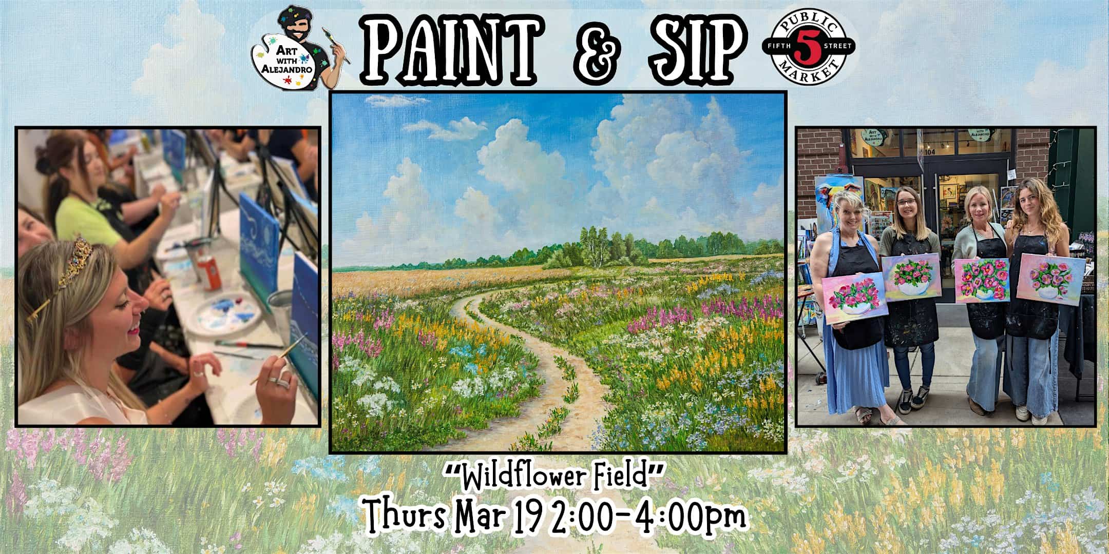 by admin23Feb Paint & Sip at 5th St Alley “Wildflower Field” at Art with Alejandro – Eugene, OR Paint & Sip at 5th St Alley “Wildflower Field” at Art with Alejandro – Eugene, OR 4 4 people viewed this event. Join us for a fun, creative afternoon. All skill levels welcome. Materials provided & BYOB Tickets-RSVP Link Date And Time Thursday, March 19th, 2026 @ 02:00 PM Location 590 Pearl St, Eugene, OR 97401 Event Types Party or Social GatheringPerforming & Visual Arts Event Category EugeneOregon Share With Friends Facebook Twitter Linkedin Xing Pinterest Share This Post: