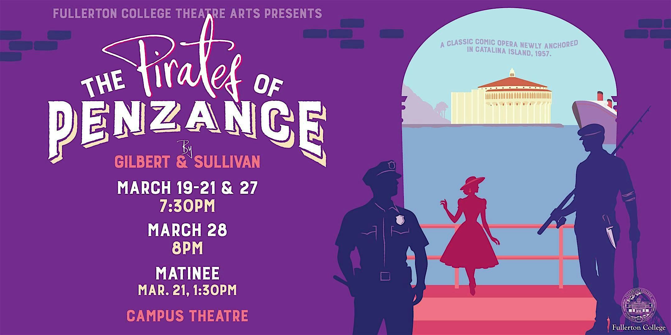 by admin05Mar Pirates of Penzance at Fullerton College Campus Theatre – Fullerton, ca Pirates of Penzance at Fullerton College Campus Theatre – Fullerton, ca 2 2 people viewed this event. Gilbert & Sullivan’s Classic Production reimagined Tickets-RSVP Link Date And Time Thursday, March 19th, 2026 07:00 PM (PST) Venue Fullerton College Campus Theatre Location 321 East Chapman Ave, Fullerton, ca 92832 Event Types Concert or PerformancePerforming & Visual Arts Event Category CaliforniaLos Angeles Share With Friends Facebook Twitter Linkedin Xing Pinterest Share This Post: