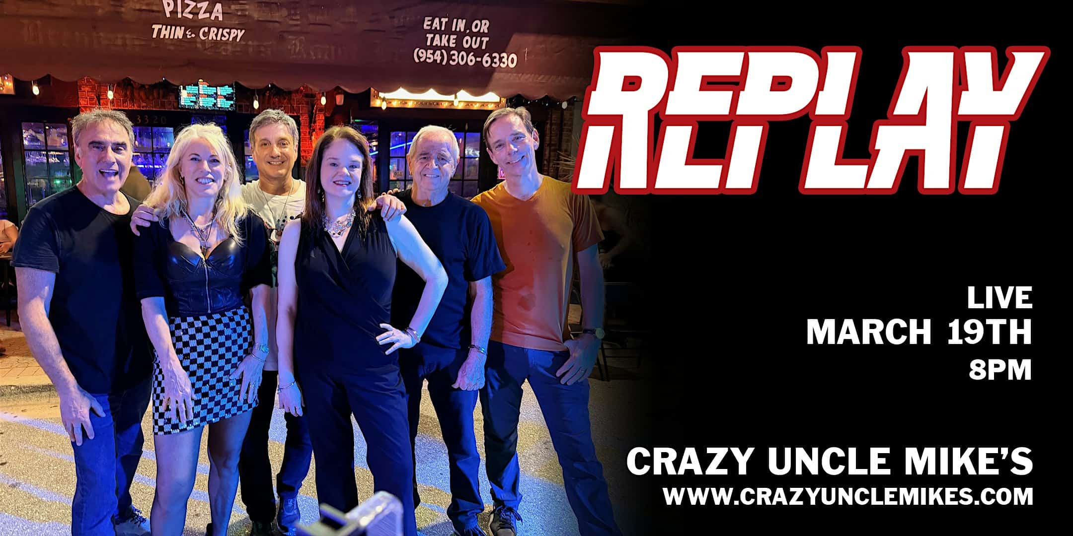 by admin23Feb Replay at Crazy Uncle Mikes – Boca Raton, FL Replay at Crazy Uncle Mikes – Boca Raton, FL 2 2 people viewed this event. Replay is live at Crazy Uncle Mike’s! Tickets-RSVP Link Date And Time Thursday, March 19th, 2026 08:00 PM (PST) Venue Crazy Uncle Mikes Location 6450 N Federal Hwy, Boca Raton, FL 33487 Event Types Concert or PerformanceMusic Event Category Florida Share With Friends Facebook Twitter Linkedin Xing Pinterest Share This Post: