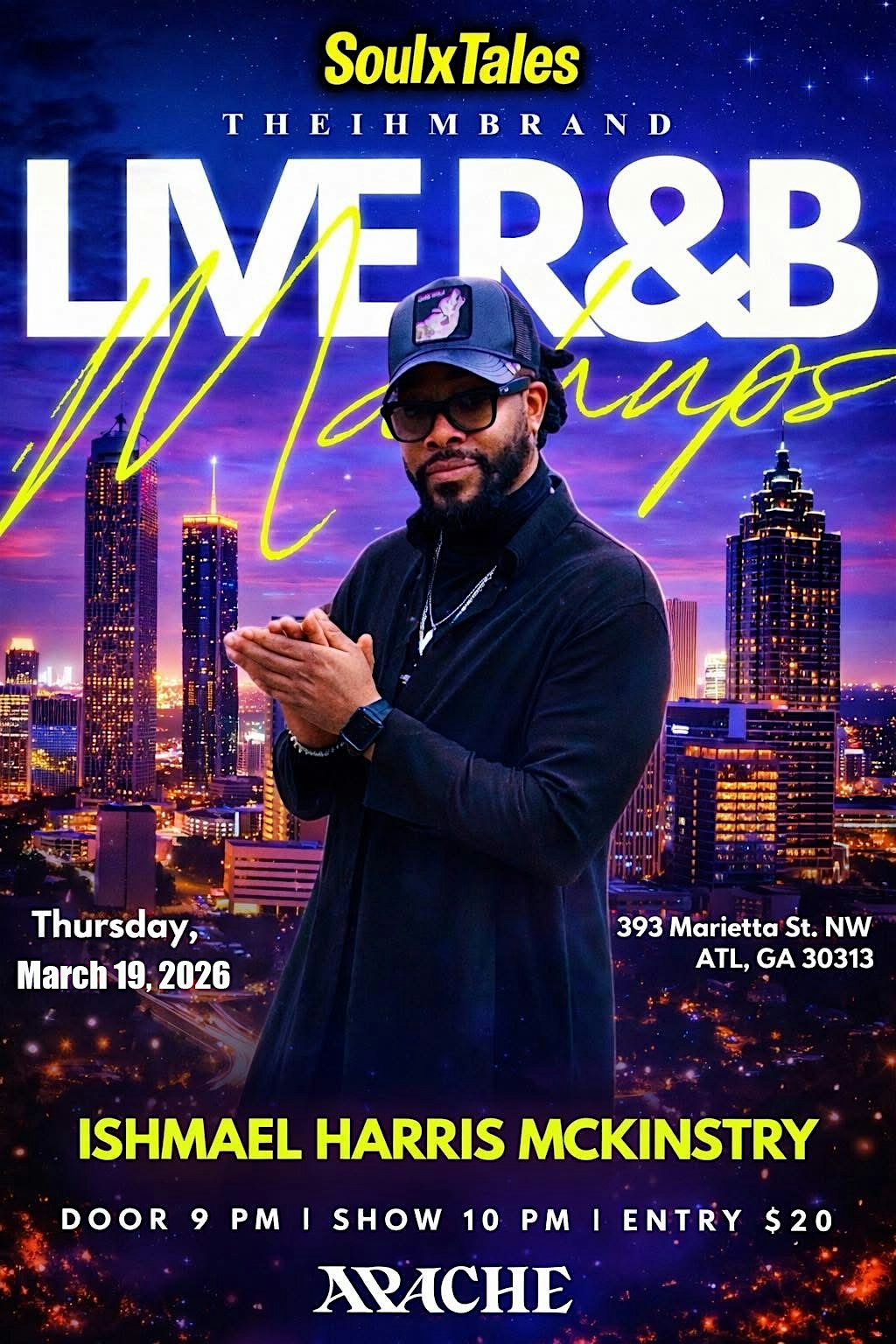by admin05Mar Soul X Tales Live R&B Mashups at 393 Marietta St NW – Atlanta, GA Soul X Tales Live R&B Mashups at 393 Marietta St NW – Atlanta, GA 1 1 people viewed this event. Welcome to a Live Music R&B Storytelling Show featuring a live band and your favorite classic rnb songs. Tickets-RSVP Link Date And Time Thursday, March 19th, 2026 09:00 PM (PST) Venue 393 Marietta St NW Location 393 Marietta Street NorthWest, Atlanta, GA 30313 Event Types Concert or Performance Event Category AtlantaGeorgia Share With Friends Facebook Twitter Linkedin Xing Pinterest Share This Post: