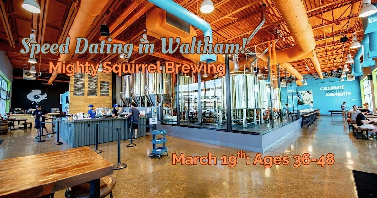by admin23Feb Speed Dating in Waltham! Ages 36-48 at Mighty Squirrel Brewing Co. – Waltham, MA Speed Dating in Waltham! Ages 36-48 at Mighty Squirrel Brewing Co. – Waltham, MA 1 1 people viewed this event. Tired of dating apps? Meet singles in person who actually want to date! Tickets-RSVP Link Date And Time Thursday, March 19th, 2026 06:00 PM (PST) Venue Mighty Squirrel Brewing Co. Location 411 Waverley Oaks Road, Waltham, MA 2452 Event Types Food & DrinkParty or Social Gathering Event Category Massachusetts Share With Friends Facebook Twitter Linkedin Xing Pinterest Share This Post: