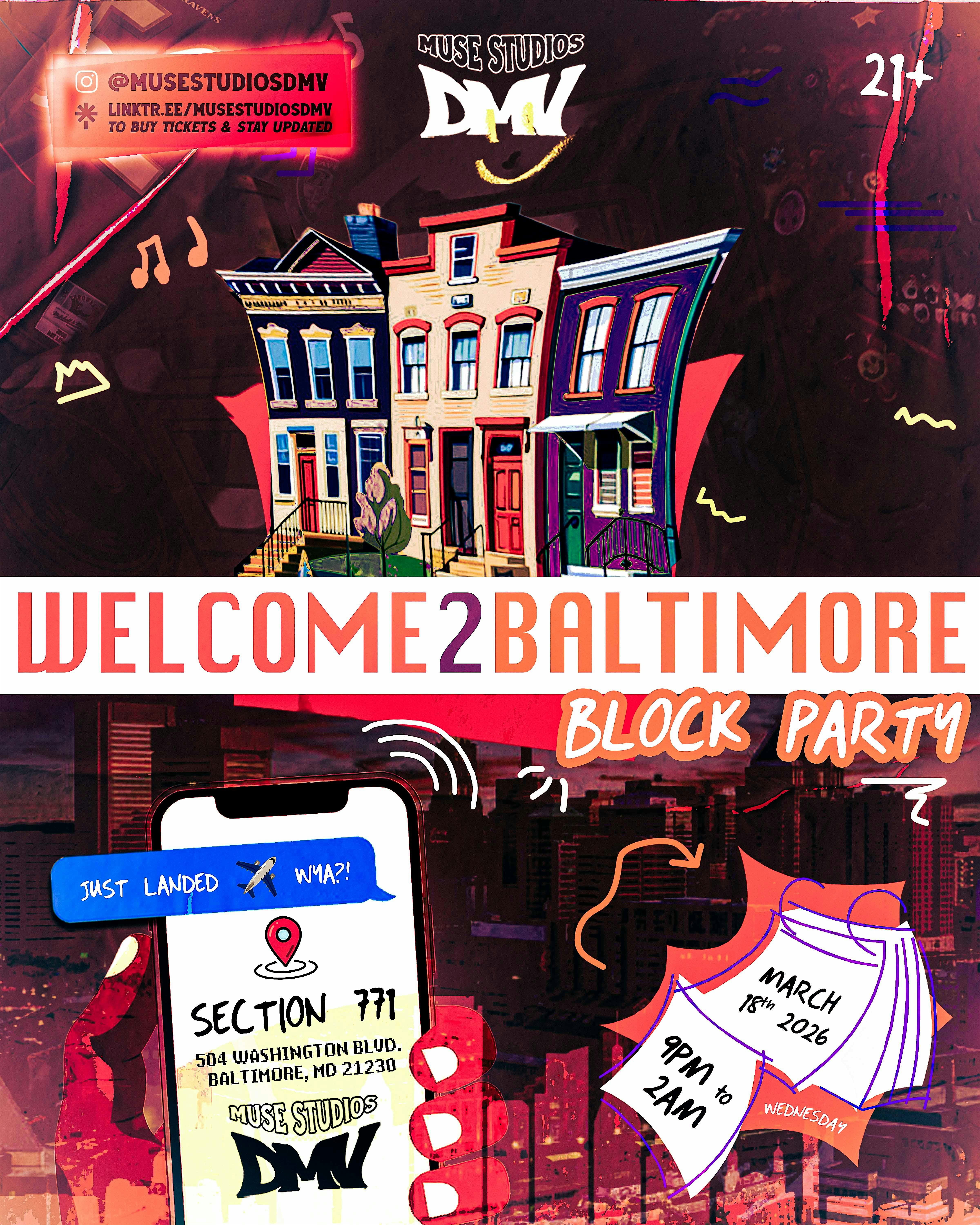 by admin13Feb Welcome to Baltimore at Section 771 – Baltimore, MD Welcome to Baltimore at Section 771 – Baltimore, MD 1 1 people viewed this event. MUSE Studios DMV presents: Welcome to Baltimore A curated block party experience connecting individuals through music and culture. Tickets-RSVP Link Date And Time Thursday, March 19th, 2026 01:00 AM (PST) Venue Section 771 Location 504 Washington Blvd, Baltimore, MD 21230 Event Types Community & CultureParty or Social Gathering Event Category BaltimoreMaryland Share With Friends Facebook Twitter Linkedin Xing Pinterest Share This Post: