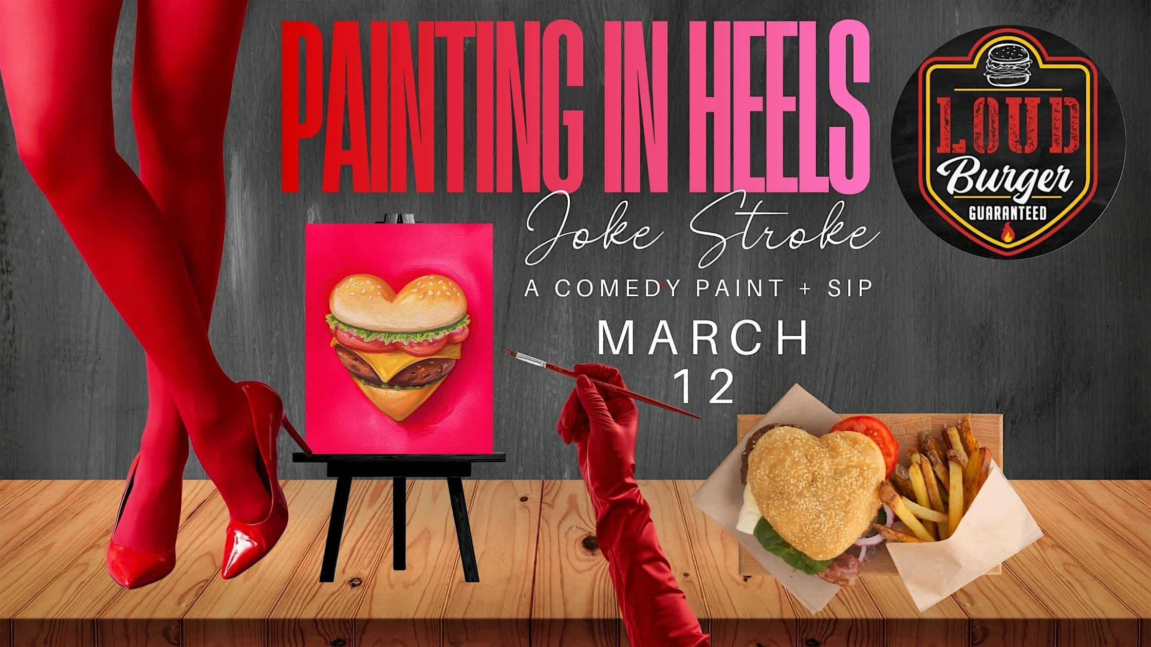 by admin14Feb Burger Lovers Painting in Heels a Comedy Paint & Sip at Loud Burger – Grand Terrace, CA Burger Lovers Painting in Heels a Comedy Paint & Sip at Loud Burger – Grand Terrace, CA 1 1 people viewed this event. Get ready to laugh, sip, and paint your heart out while wearing heels at Loud Burger’s hilarious Burger Lovers Painting event! Tickets-RSVP Link Date And Time Friday, March 20th, 2026 02:00 AM (PST) Venue Loud Burger Location 22497 Barton Road, Grand Terrace, CA 92313 Event Types Party or Social GatheringPerforming & Visual Arts Event Category California Share With Friends Facebook Twitter Linkedin Xing Pinterest Share This Post: