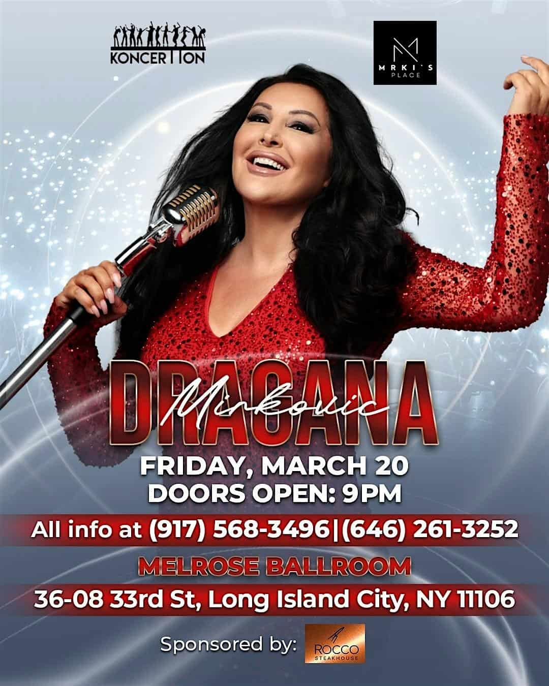 by admin23Feb Dragana Mirković at Melrose Ballroom – Astoria, NY Dragana Mirković at Melrose Ballroom – Astoria, NY 1 1 people viewed this event. Live Concert Tickets-RSVP Link Date And Time Friday, March 20th, 2026 09:00 PM (PST) Venue Melrose Ballroom Location 36-08 33rd street, Astoria, NY 11106 Event Types Concert or PerformanceMusic Event Category New YorkNew York City Share With Friends Facebook Twitter Linkedin Xing Pinterest Share This Post: