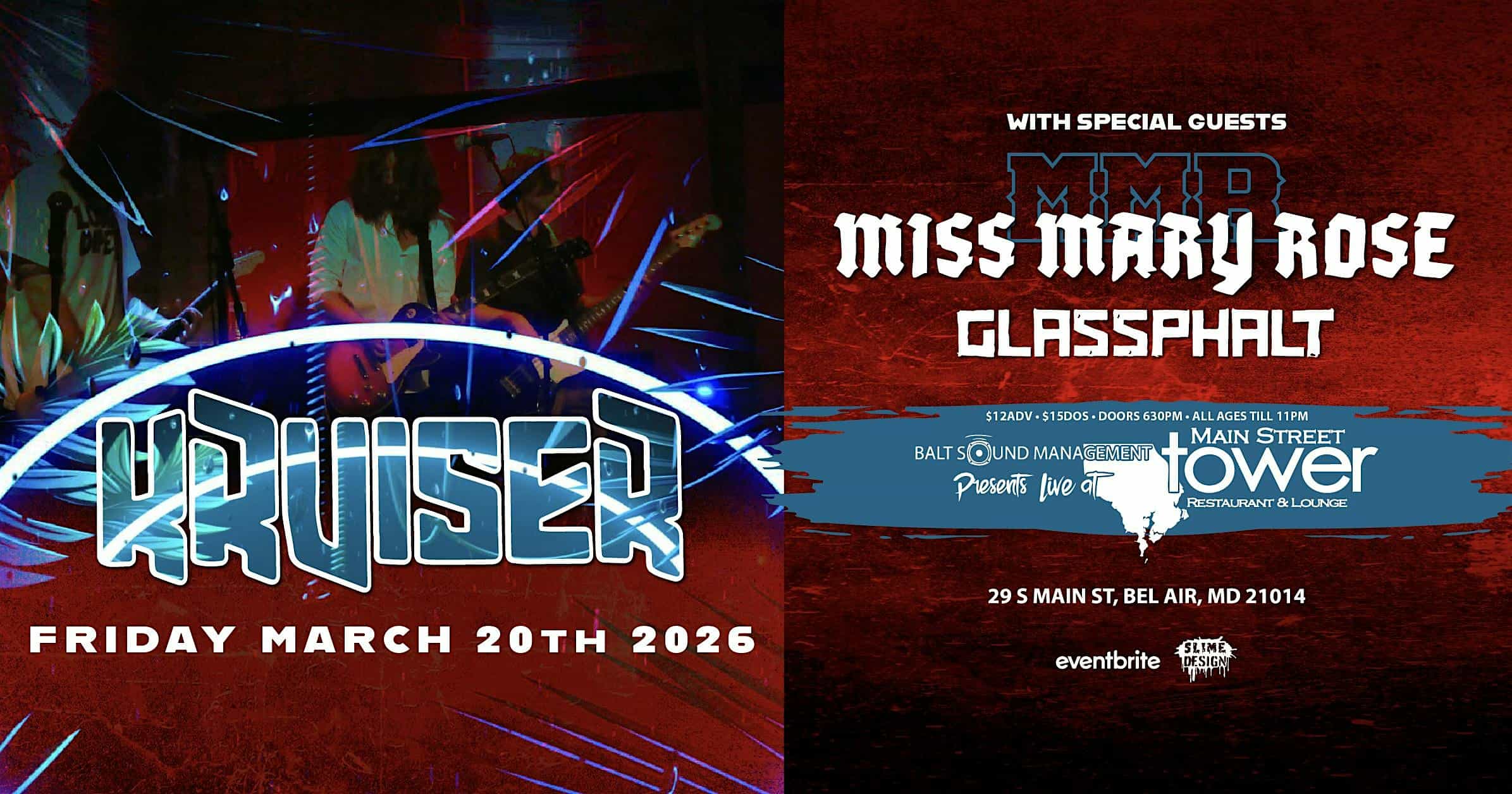 by admin23Feb Kruiser with Miss Mary Rose, Glassphalt at Main Street Tower – Bel Air, MD Kruiser with Miss Mary Rose, Glassphalt at Main Street Tower – Bel Air, MD 1 1 people viewed this event. Kruiser vibes with Miss Mary Rose & Glassphalt bringing the heat live—don’t miss the party in person! Tickets-RSVP Link Date And Time Friday, March 20th, 2026 06:00 PM (PST) Venue Main Street Tower Location 29 South Main Street, Bel Air, MD 21014 Event Types Concert or PerformanceMusic Event Category BaltimoreMaryland Share With Friends Facebook Twitter Linkedin Xing Pinterest Share This Post: