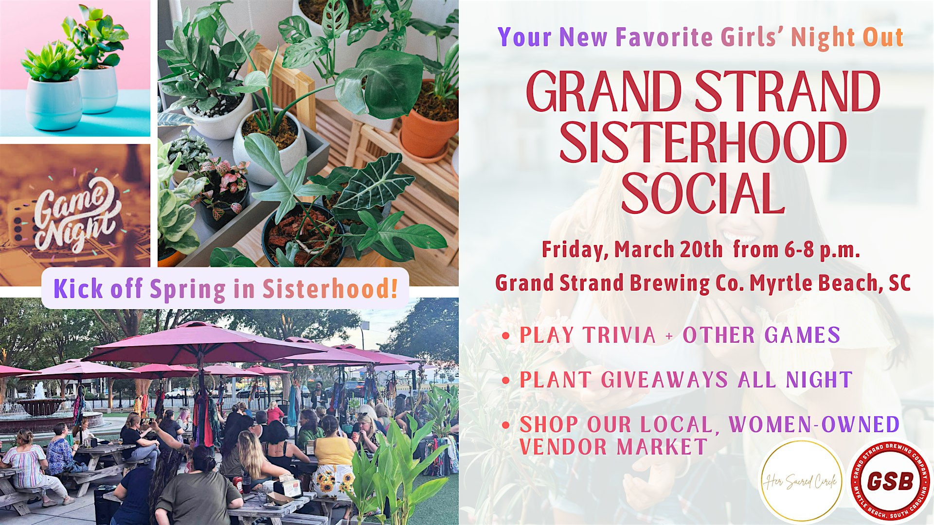 by admin13Feb March Grand Strand Sisterhood: Flourish and Fun at Grand Strand Brewing Company – Myrtle Beach, SC March Grand Strand Sisterhood: Flourish and Fun at Grand Strand Brewing Company – Myrtle Beach, SC 2 2 people viewed this event. Get ready to level up your sisterhood bonding with growth and fun games at Grand Strand Brewing Company! Tickets-RSVP Link Date And Time Friday, March 20th, 2026 10:00 PM (PST) Venue Grand Strand Brewing Company Location 819 North Kings Highway, Myrtle Beach, SC 29577 Event Types Community & CultureParty or Social Gathering Event Category Myrtle BeachSouth Carolina Share With Friends Facebook Twitter Linkedin Xing Pinterest Share This Post: