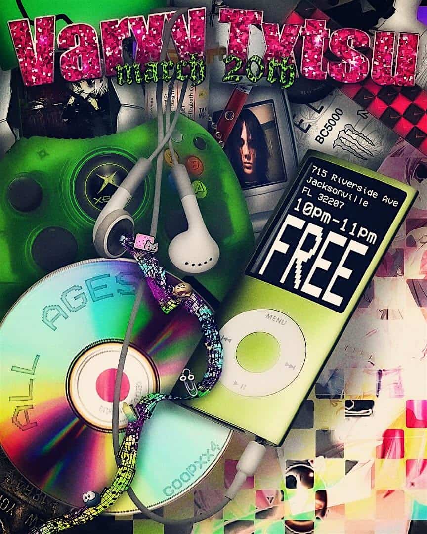 by admin23Feb NEW WAVE RAVE: txtsu & varxy at 715 Riverside Ave – Jacksonville, FL NEW WAVE RAVE: txtsu & varxy at 715 Riverside Ave – Jacksonville, FL 1 1 people viewed this event. All ages rave featuring Varxy & Txtsu. Free entry with RSVP. Limited capacity. VIP fast pass available. Tickets-RSVP Link Date And Time Friday, March 20th, 2026 05:00 PM (PST) Venue 715 Riverside Ave Location 715 Riverside Avenue, Jacksonville, FL 32204 Event Types MusicParty or Social Gathering Event Category FloridaJacksonville Share With Friends Facebook Twitter Linkedin Xing Pinterest Share This Post: