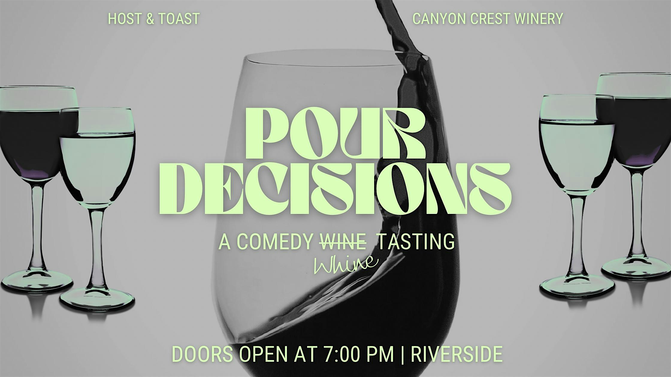 by admin13Feb Pour Decisions a Comedy Wine Tasting at Canyon Crest Winery – Riverside, CA Pour Decisions a Comedy Wine Tasting at Canyon Crest Winery – Riverside, CA 1 1 people viewed this event. Get ready to sip, laugh, and make some pour decisions at this hilarious comedy wine tasting event! Tickets-RSVP Link Date And Time Friday, March 20th, 2026 02:00 AM (PST) Venue Canyon Crest Winery Location 301 East Alessandro Boulevard, Riverside, CA 92508 Event Types Food & DrinkParty or Social Gathering Event Category California Share With Friends Facebook Twitter Linkedin Xing Pinterest Share This Post: