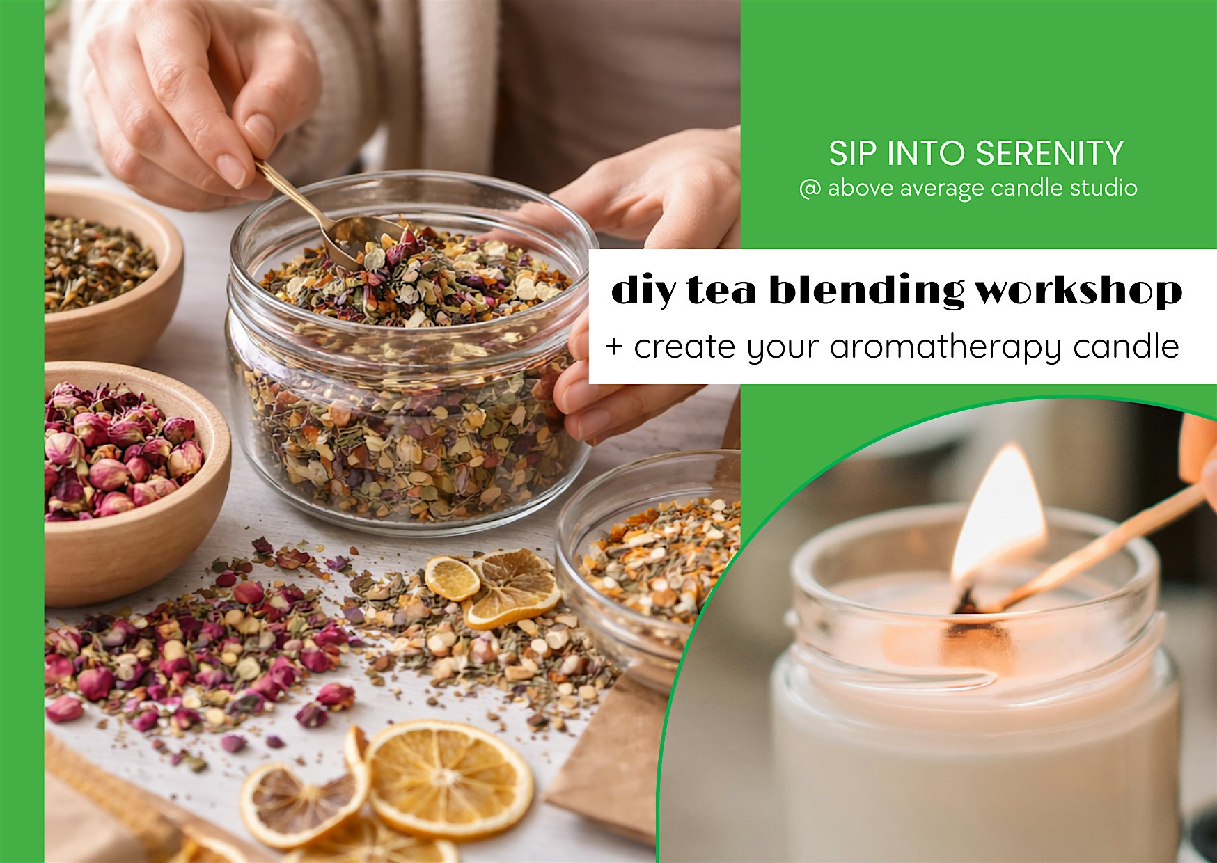 Sip Into Serenity: Tea Blending +Aromatherapy Candle Making Workshop at 3414 W Foster Ave – Chicago, IL Sip Into Serenity: Tea Blending +Aromatherapy Candle Making Workshop at 3414 W Foster Ave – Chicago, IL 1 1 people viewed this event. Slow down. Breathe deep. Pour intention into every moment. Tickets-RSVP Link Register for event Date And Time Friday, March 20th, 2026 @ 10:00 AM Location 3414 West Foster Avenue, Chicago, ILĀ 60625 Event Types Class, Training, or WorkshopFood & Drink Event Category ChicagoIllinois Share With Friends Facebook Twitter Linkedin Xing Pinterest