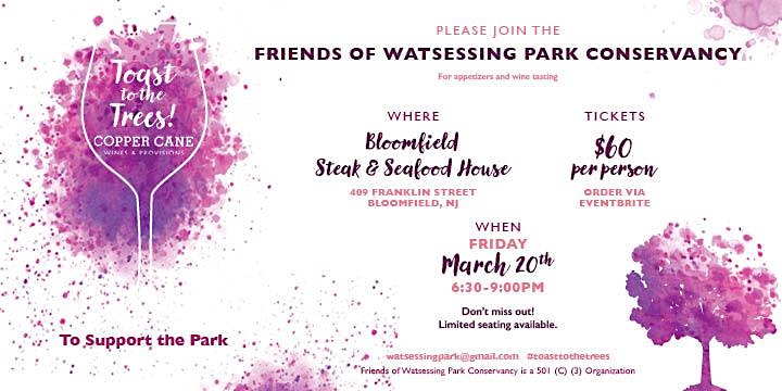 by admin23Feb Toast to the Trees 2026 at Bloomfield Steak & Seafood House – Bloomfield, NJ Toast to the Trees 2026 at Bloomfield Steak & Seafood House – Bloomfield, NJ 1 1 people viewed this event. Join the Friends of Watsessing Park Conservancy for appetizers and a wine tasting at the Bloomfield Steakhouse Tickets-RSVP Link Date And Time Friday, March 20th, 2026 @ 06:00 PM Location 409 Franklin Street, Bloomfield, NJ 7003 Event Types Charity & CausesParty or Social Gathering Event Category New Jersey Share With Friends Facebook Twitter Linkedin Xing Pinterest Share This Post: