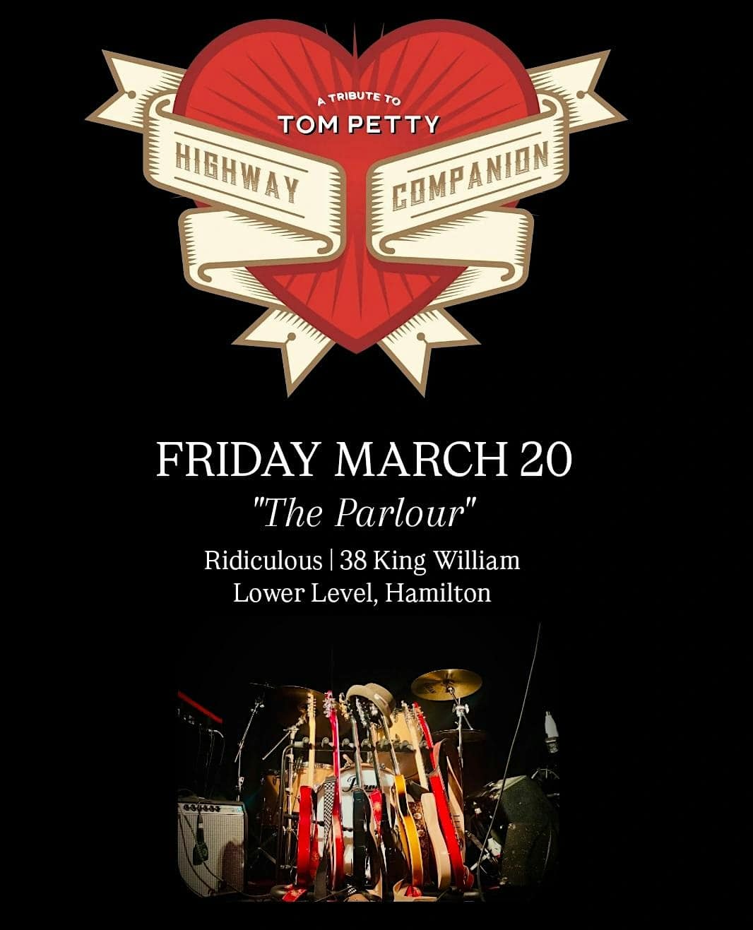 by admin23Feb TOM PETTY TRIBUTE — HIGHWAY COMPANION @ Ridiculous (Hamilton) at 38 King William St – Hamilton, Canada TOM PETTY TRIBUTE — HIGHWAY COMPANION @ Ridiculous (Hamilton) at 38 King William St – Hamilton, Canada 3 3 people viewed this event. Canada’s Premier TOM PETTY TRIBUTE makes their debut at Ridiculous Night Club in “The Parlour” – Hamilton Ontario. Tickets-RSVP Link Date And Time Friday, March 20th, 2026 08:00 PM (PST) Venue 38 King William St Location 38 King William Street, Hamilton, Canada L8N 1B3 Event Types Concert or PerformanceMusic Event Category Canada Share With Friends Facebook Twitter Linkedin Xing Pinterest Share This Post:
