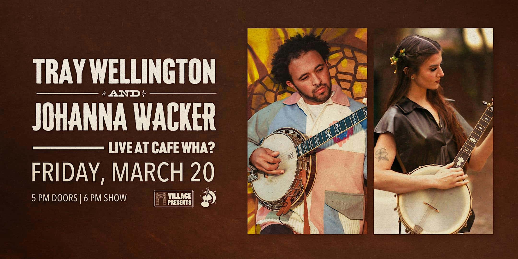 by admin23Feb Tray Wellington & Johanna Wacker at Cafe Wha? – New York, NY Tray Wellington & Johanna Wacker at Cafe Wha? – New York, NY 1 1 people viewed this event. Tray Wellington & Johanna Wacker | Live at Cafe Wha? | Friday, March 20th | 6PM Show, 5PM Doors Tickets-RSVP Link Date And Time Friday, March 20th, 2026 06:00 PM (PST) Venue Cafe Wha? Location 115 MacDougal Street, New York, NY 10012 Event Types Concert or PerformanceMusic Event Category New YorkNew York City Share With Friends Facebook Twitter Linkedin Xing Pinterest Share This Post: