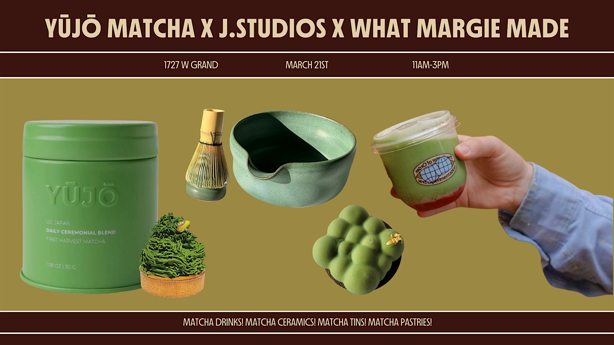 by admin27Feb All Things Matcha at 1727 W Grand Ave – Chicago, IL All Things Matcha at 1727 W Grand Ave – Chicago, IL 1 1 people viewed this event. Enjoy a specialty matcha menu, local ceramics, and matcha pastries! Tickets-RSVP Link Date And Time Saturday, March 21st, 2026 11:00 AM (PST) Venue 1727 W Grand Ave Location 1727 West Grand Avenue, Chicago, IL 60622 Event Types Festival or FairFood & Drink Event Category ChicagoIllinois Share With Friends Facebook Twitter Linkedin Xing Pinterest Share This Post: