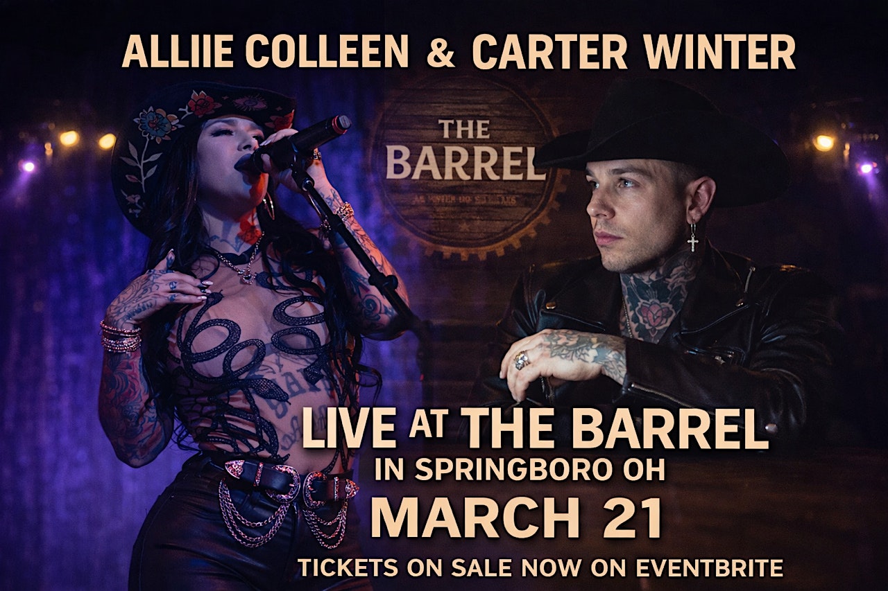 by admin23Feb Allie Colleen & Carter Winter Live at The Barrel in Springboro! at 857 W Central Ave – Springboro, OH Allie Colleen & Carter Winter Live at The Barrel in Springboro! at 857 W Central Ave – Springboro, OH 2 2 people viewed this event. Catch Allie Colleen & Carter Winter rockin’ the stage live at The Barrel in Springboro—don’t miss out! Tickets-RSVP Link Date And Time Saturday, March 21st, 2026 07:00 PM (PST) Venue 857 W Central Ave Location 857 West Central Avenue, Springboro, OH 45066 Event Types Concert or PerformanceMusic Event Category DaytonOhio Share With Friends Facebook Twitter Linkedin Xing Pinterest Share This Post: