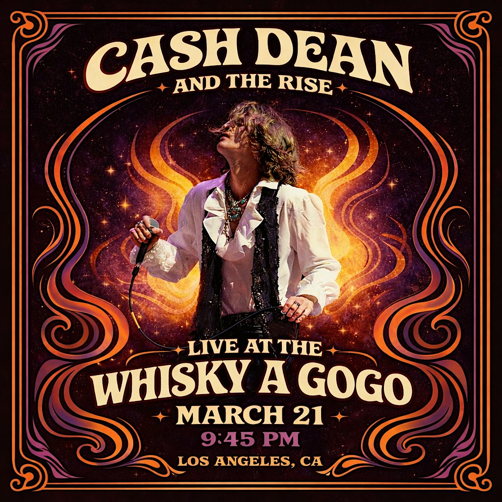 by admin24Feb Cash Dean and THE RISE Live at the Whiskey A Go Go at Whisky a Go Go – West Hollywood, CA Cash Dean and THE RISE Live at the Whiskey A Go Go at Whisky a Go Go – West Hollywood, CA 2 2 people viewed this event. A young rock band from Phoenix AZ coming to The Legendary venue The Whiskey A Go Go! bringing the golden age back! Tickets-RSVP Link Date And Time Saturday, March 21st, 2026 06:00 PM (PST) Venue Whisky a Go Go Location 8901 Sunset Boulevard, West Hollywood, CA 90069 Event Types Concert or PerformanceMusic Event Category California Share With Friends Facebook Twitter Linkedin Xing Pinterest Share This Post: