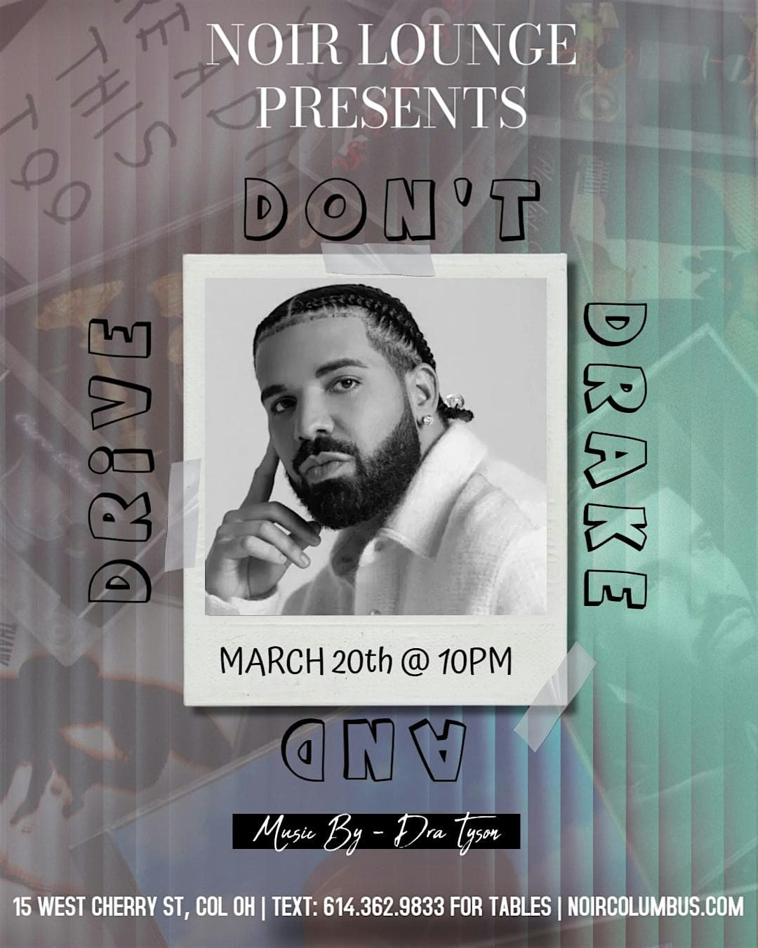 by admin14Feb Don’t Drake And Drive, Vol 3 at Noir Lounge – Columbus, OH Don’t Drake And Drive, Vol 3 at Noir Lounge – Columbus, OH 2 2 people viewed this event. Join us for a night of non-stop Drake hits, good vibes, and dancing! Celebrate the music, energy, and legacy of Drake all night long! Tickets-RSVP Link Date And Time Saturday, March 21st, 2026 02:00 AM (PST) Venue Noir Lounge Location 15 West Cherry Street, Columbus, OH 43215 Event Types Party or Social Gathering Event Category Ohio Share With Friends Facebook Twitter Linkedin Xing Pinterest Share This Post: