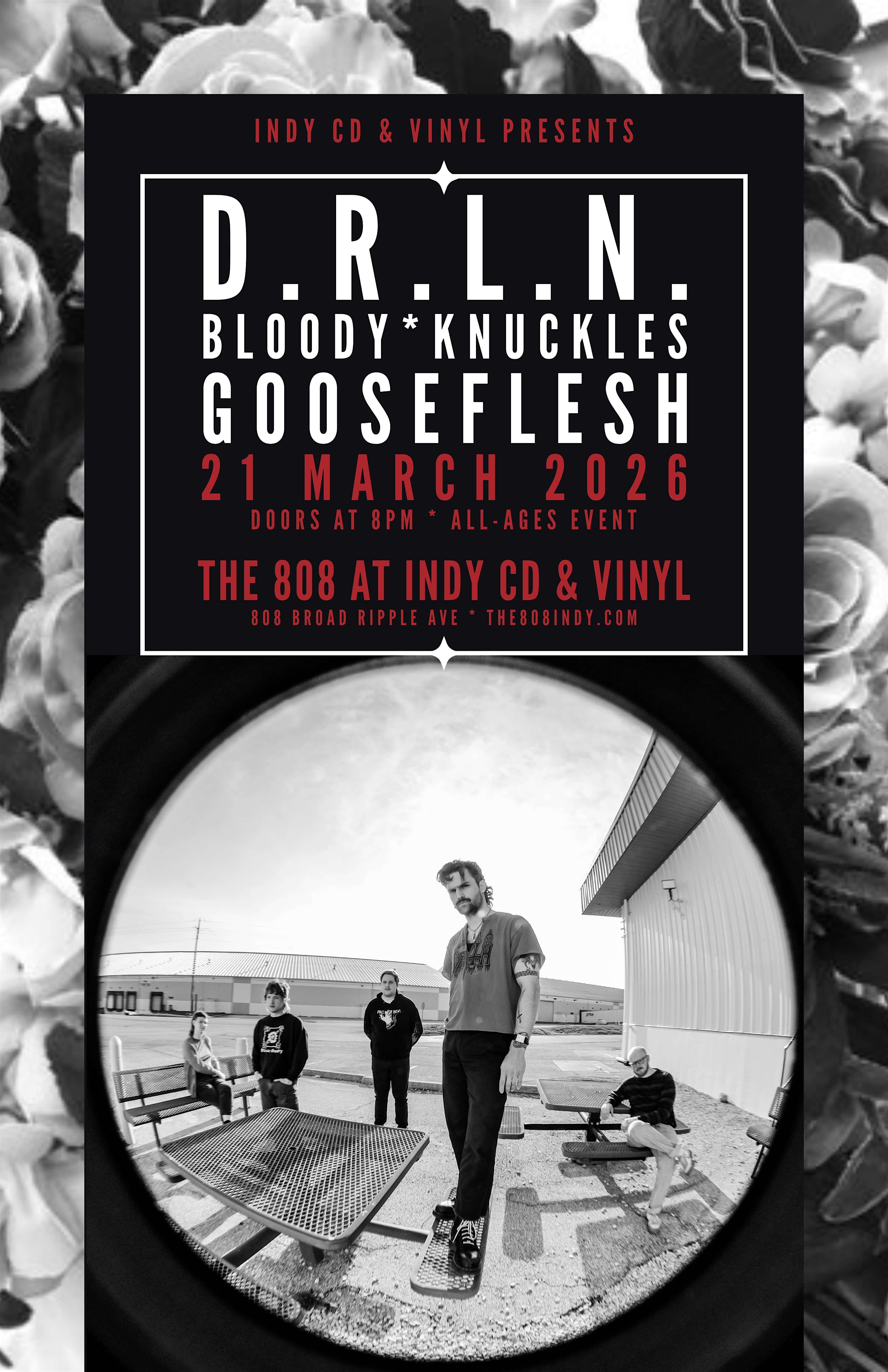 by admin23Feb DRLN live at The 808 at Indy CD & Vinyl at The 808 at Indy CD & Vinyl – Indianapolis, IN DRLN live at The 808 at Indy CD & Vinyl at The 808 at Indy CD & Vinyl – Indianapolis, IN 3 3 people viewed this event. Indy CD & Vinyl Presents D.R.L.N. live at The 808 with guests BLOODY KNUCKLES and more! An All-Ages event on Saturday March 21st! Tickets-RSVP Link Date And Time Saturday, March 21st, 2026 08:00 PM (PST) Venue The 808 at Indy CD & Vinyl Location 808 Broad Ripple Avenue, Indianapolis, IN 46220 Event Types Concert or PerformanceMusic Event Category IndianaIndianapolis Share With Friends Facebook Twitter Linkedin Xing Pinterest Share This Post: