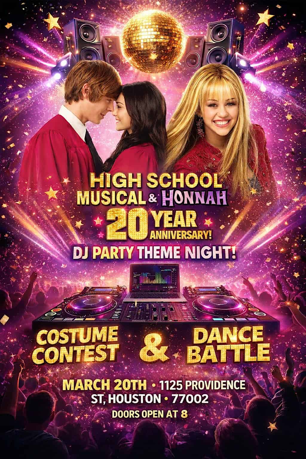 by admin14Feb HSM X Hannah Montana at 1125 Providence St – Houston, TX HSM X Hannah Montana at 1125 Providence St – Houston, TX 4 4 people viewed this event. Get ready to relive the ultimate throwback with HSM X Hannah Montana – a nostalgic fusion of two iconic eras in pop culture! Tickets-RSVP Link Date And Time Saturday, March 21st, 2026 01:00 AM (PST) Venue 1125 Providence St Location 1125 Providence Street, Houston, TX 77002 Event Types Concert or PerformancePerforming & Visual Arts Event Category HoustonTexas Share With Friends Facebook Twitter Linkedin Xing Pinterest Share This Post: