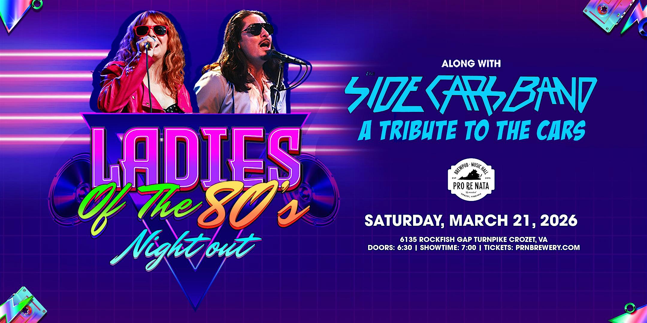 by admin27Feb Ladies Of The 80s Night Out + Side Cars Band: Tribute To The Cars @PRN at Pro Re Nata – Crozet, VA Ladies Of The 80s Night Out + Side Cars Band: Tribute To The Cars @PRN at Pro Re Nata – Crozet, VA 1 1 people viewed this event. Get ready to rewind, relive, and rock the night away! Ladies Of The 80s Night Out + The Side Cars Band at Pro Re Nata in Crozet! Tickets-RSVP Link Date And Time Saturday, March 21st, 2026 07:00 PM (PST) Venue Pro Re Nata Location 6135 Rockfish Gap Turnpike, Crozet, VA 22932 Event Types Concert or PerformanceMusic Event Category Virginia Share With Friends Facebook Twitter Linkedin Xing Pinterest Share This Post: