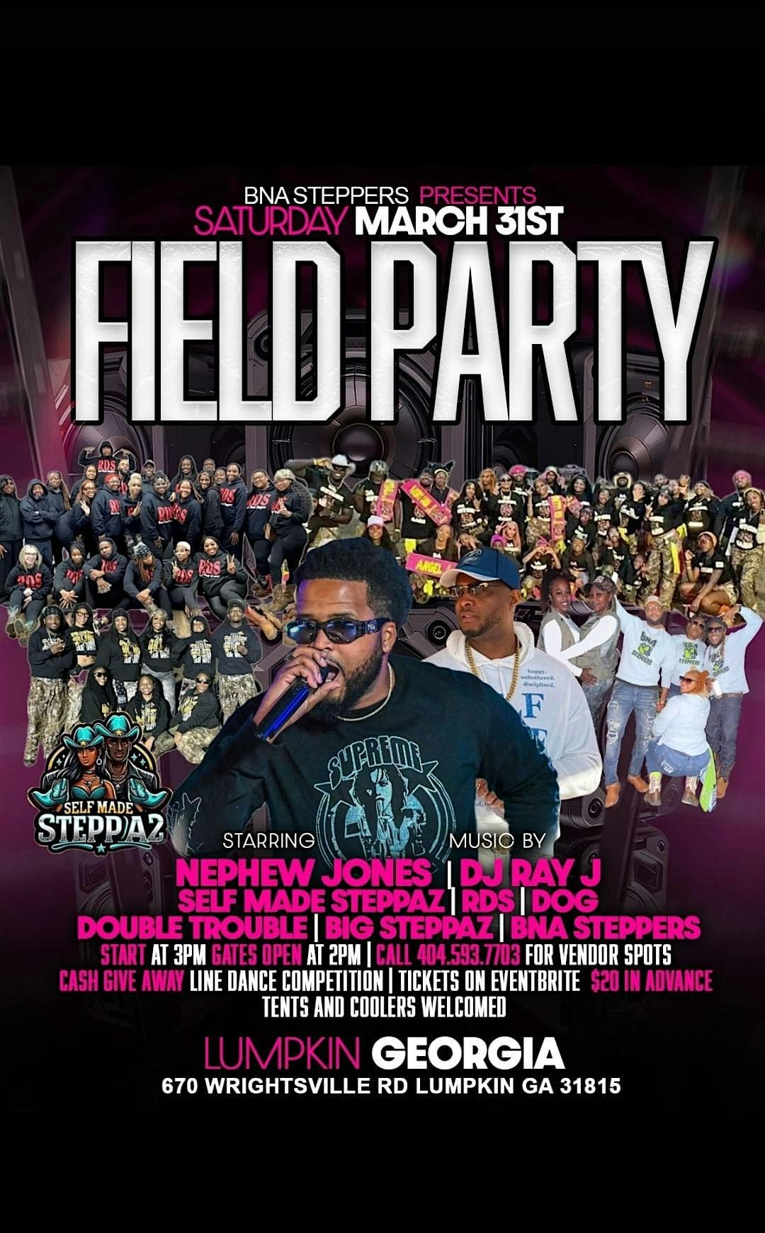 by admin14Feb Line Dance Field Party With Live Performance by Nephew Jones at Georgia 1 – Lumpkin, GA Line Dance Field Party With Live Performance by Nephew Jones at Georgia 1 – Lumpkin, GA 2 2 people viewed this event. Get ready to groove and make new friends at the 2026 Line Dance Field Party—fun moves and good vibes! Tickets-RSVP Link Date And Time Saturday, March 21st, 2026 06:00 PM (PST) Venue Georgia 1 Location Georgia 1, Lumpkin, GA 31815 Event Types MusicParty or Social Gathering Event Category Georgia Share With Friends Facebook Twitter Linkedin Xing Pinterest Share This Post: