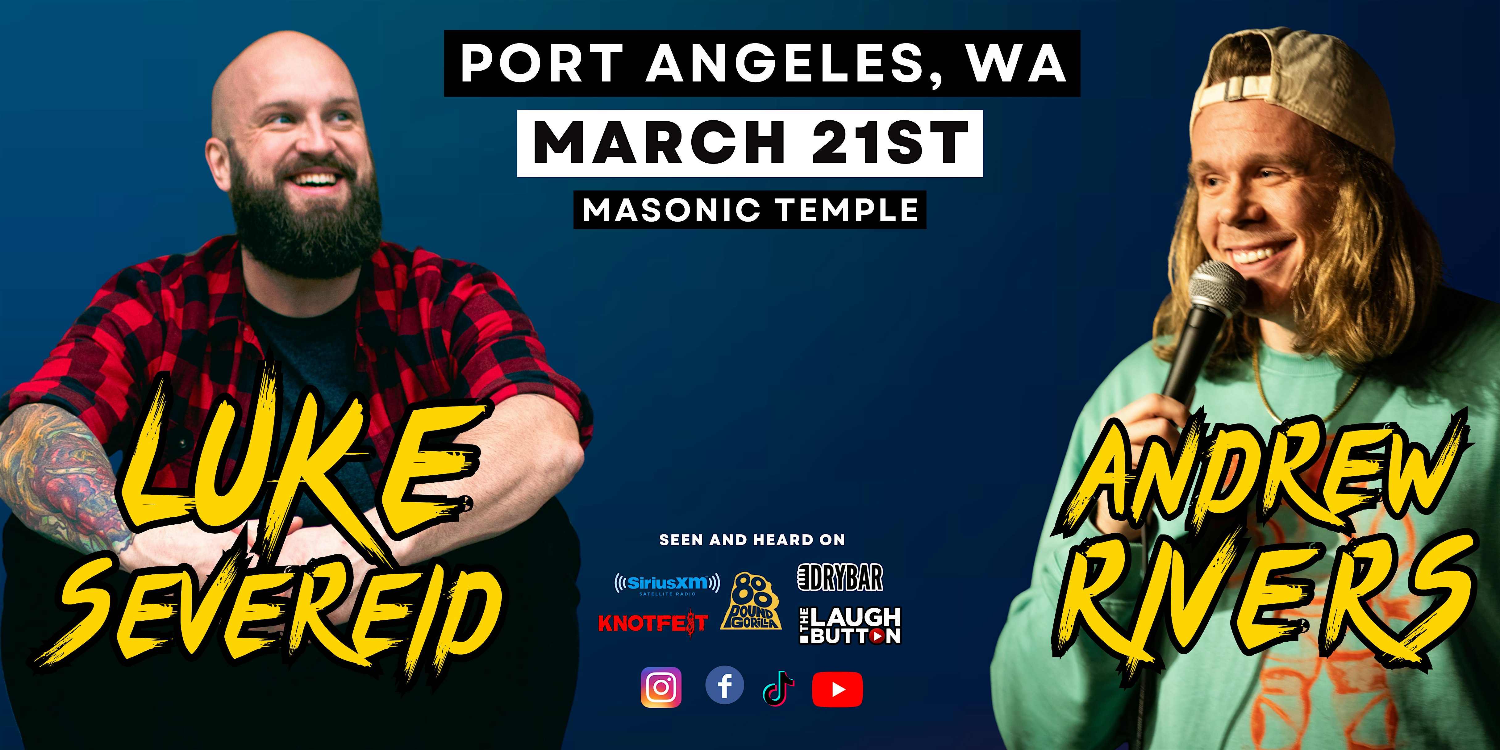by admin27Feb LUKE SEVEREID and ANDREW RIVERS in Port Angeles, WA at 622 S Lincoln St – Port Angeles, WA LUKE SEVEREID and ANDREW RIVERS in Port Angeles, WA at 622 S Lincoln St – Port Angeles, WA 1 1 people viewed this event. The PNW native born Ill begotten Prodigal Sons, Luke Severeid and Andrew Rivers return to Port Angeles, WA for One Night ONLY / March 21st Tickets-RSVP Link Date And Time Saturday, March 21st, 2026 07:00 PM (PST) Venue 622 S Lincoln St Location 622 South Lincoln Street, Port Angeles, WA 98362 Event Types Concert or PerformanceMusic Event Category Washington Share With Friends Facebook Twitter Linkedin Xing Pinterest Share This Post: