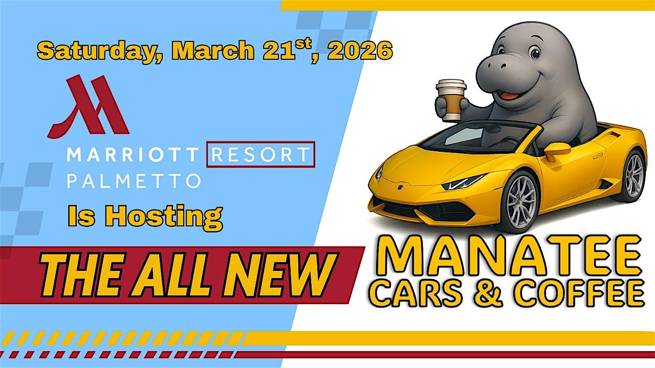 by admin23Feb Manatee Cars & Coffee March 21st 2026 at Palmetto Marriott Resort & Spa – Palmetto, FL Manatee Cars & Coffee March 21st 2026 at Palmetto Marriott Resort & Spa – Palmetto, FL 2 2 people viewed this event. Elevated, monthly, Cars and Coffee event @ Palmetto Marriott Resort & Spa. All Display and VIP vehicles must be registered in advance. Tickets-RSVP Link Date And Time Saturday, March 21st, 2026 09:00 AM (PST) Venue Palmetto Marriott Resort & Spa Location 600 U.S. 41, Palmetto, FL 34221 Event Types Party or Social Gathering Event Category Florida Share With Friends Facebook Twitter Linkedin Xing Pinterest Share This Post: