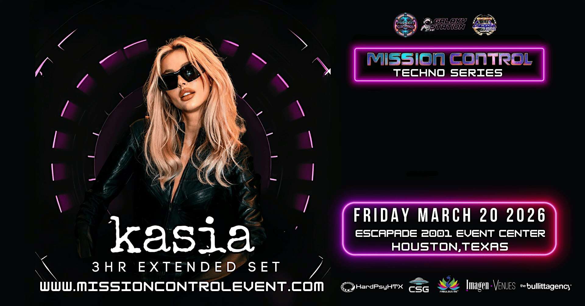 by admin14Feb Mission Control Techno Series: Kasia (Drumcode, Afterlife) at Escapade 2001 – Houston, TX Mission Control Techno Series: Kasia (Drumcode, Afterlife) at Escapade 2001 – Houston, TX 2 2 people viewed this event. Galaxy Station presents: Mission Control Techno Series Tickets-RSVP Link Date And Time Saturday, March 21st, 2026 01:00 AM (PST) Venue Escapade 2001 Location 11903 Eastex Freeway, Houston, TX 77039 Event Types Concert or PerformancePerforming & Visual Arts Event Category HoustonTexas Share With Friends Facebook Twitter Linkedin Xing Pinterest Share This Post: