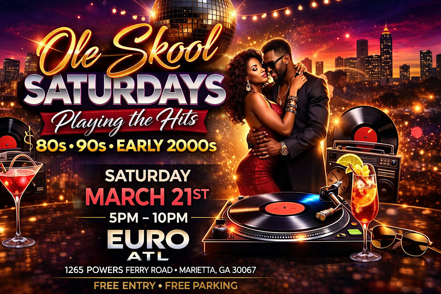 by admin27Feb Ole Skool Saturdays @ Euro ATL Playing The Best of 80s ,90s, early 2000s at Euro Atlanta – Marietta, GA Ole Skool Saturdays @ Euro ATL Playing The Best of 80s ,90s, early 2000s at Euro Atlanta – Marietta, GA 2 2 people viewed this event. Ole Skool Saturdays at Euro ATL the ultimate early evening throwback experience featuring the best hits from the 80s, 90s, & early 2000s Tickets-RSVP Link Date And Time Saturday, March 21st, 2026 05:00 PM (PST) Venue Euro Atlanta Location 1265 Powers Ferry Road, Marietta, GA 30067 Event Types MusicParty or Social Gathering Event Category AtlantaGeorgia Share With Friends Facebook Twitter Linkedin Xing Pinterest Share This Post: